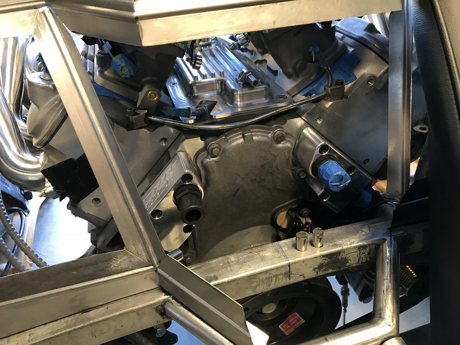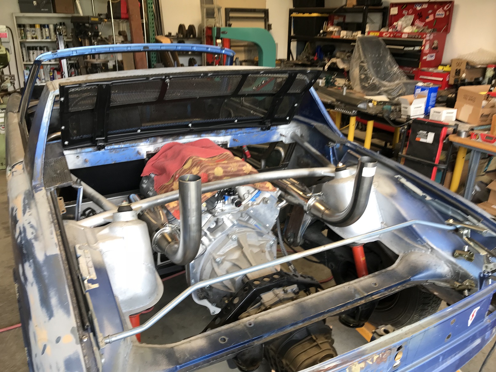 I'm still at the head-scratching stage and in looking at the DP2 (it's the car pictured here), it's using a pretty shallow angle and what seems to be a relatively small scoop to successfully cool an LS3. A front facing inlet doesn't have to be that large to let a lot of air in. Even more important is pressure differential and the area of the exit from the rad. Here's a pic of the semi-tube frame I installed in that white widebody. ![]() |