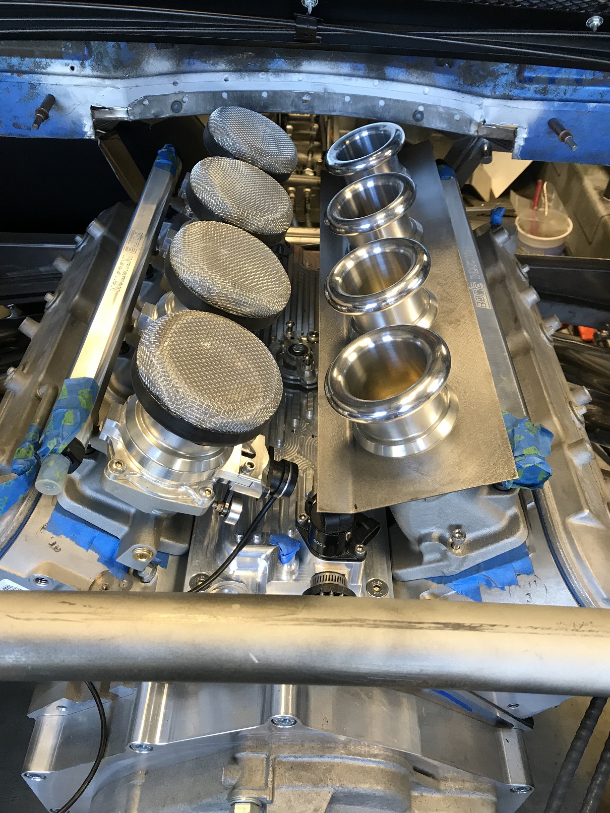 And as long as the hood was up, so to speak, I went back to another idea: running the stacks open but building some sort of air box/filter set up. I have a few ideas so the first step was to see how close I could come to accurately measuring then fabbing up the piece that forms the bottom but allows the throttle bodies to poke through.