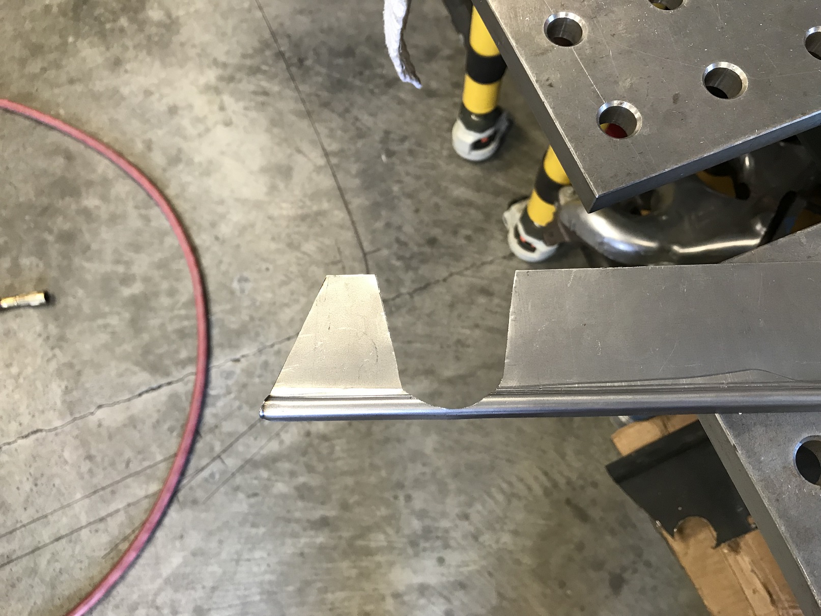 I worked a bit more on the uppermost section of the firewall. After making some practice pieces to be sure I understood the necessary dimensions, I fabbed up what I hope is a final piece.