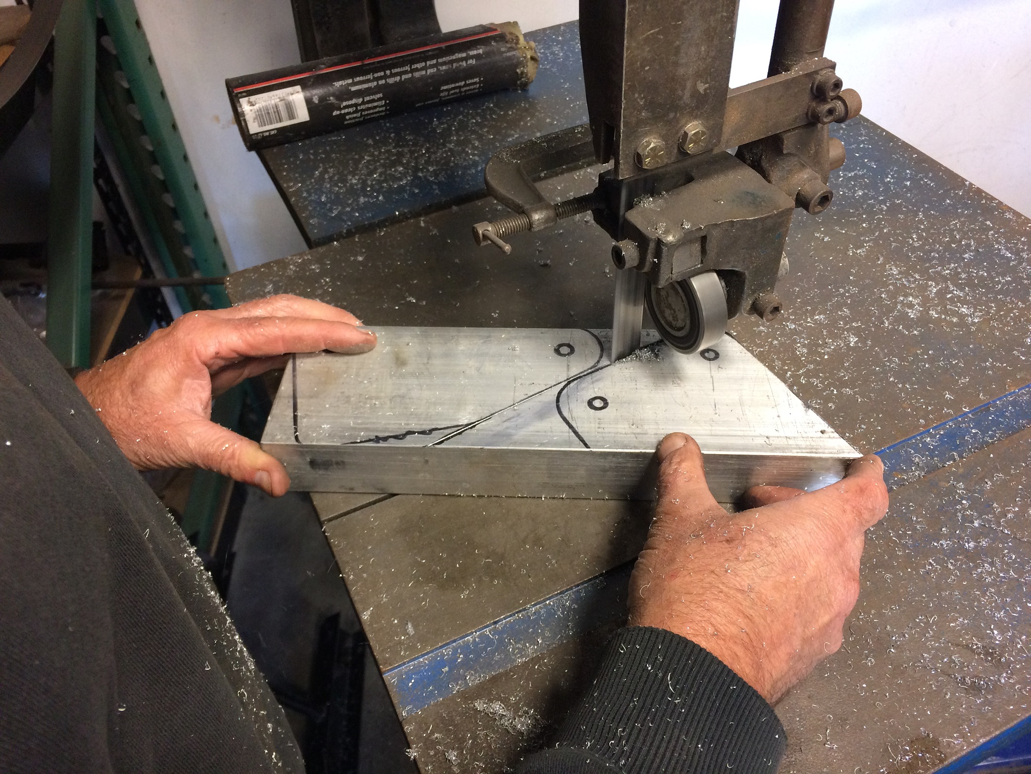 Nothing like finding a block of aluminum that happens to be the exact right thickness! Got lucky on that one, for sure. So here's an action shot of the worlds most kick-ass band saw making short work of roughing out said spacers. (IMG:style_emoticons/default/sawzall-smiley.gif) It cut through that block "like butta..." (IMG:style_emoticons/default/aktion035.gif) Yes, this spacer means there's a big increase in the leverage on the mount. But fear not! The Boxster trans has a mount on the end that I'm going to use to add a 3rd trans mount. In all, the drive train should be well secured in it's new, forward position. I hope to get it test fit in the next day or so. Once I've verified all the clearances, I'll go after closing in the fire wall and floor. I'll claim MAJOR MILESTONE at that point. Attached thumbnail(s) |