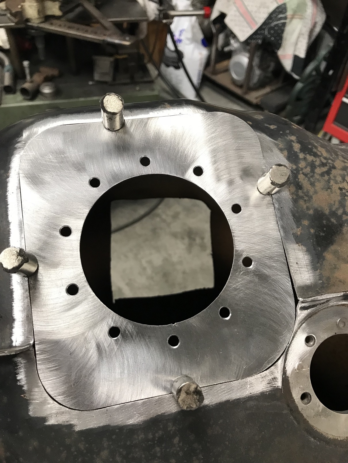 Back to the build: There are so many things to do... I decided to go after prepping the fuel tank. Here's the in-tank pump plate nearly ready for welding. Attached thumbnail(s) |