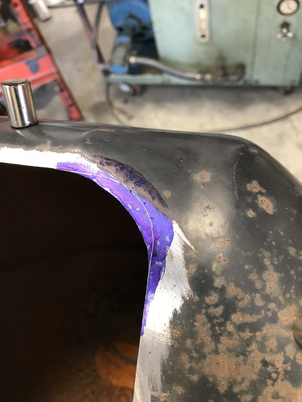 Then I applied some Dykem. Mostly to make the scribe line show up better in the pics, but it does make things easier to see.