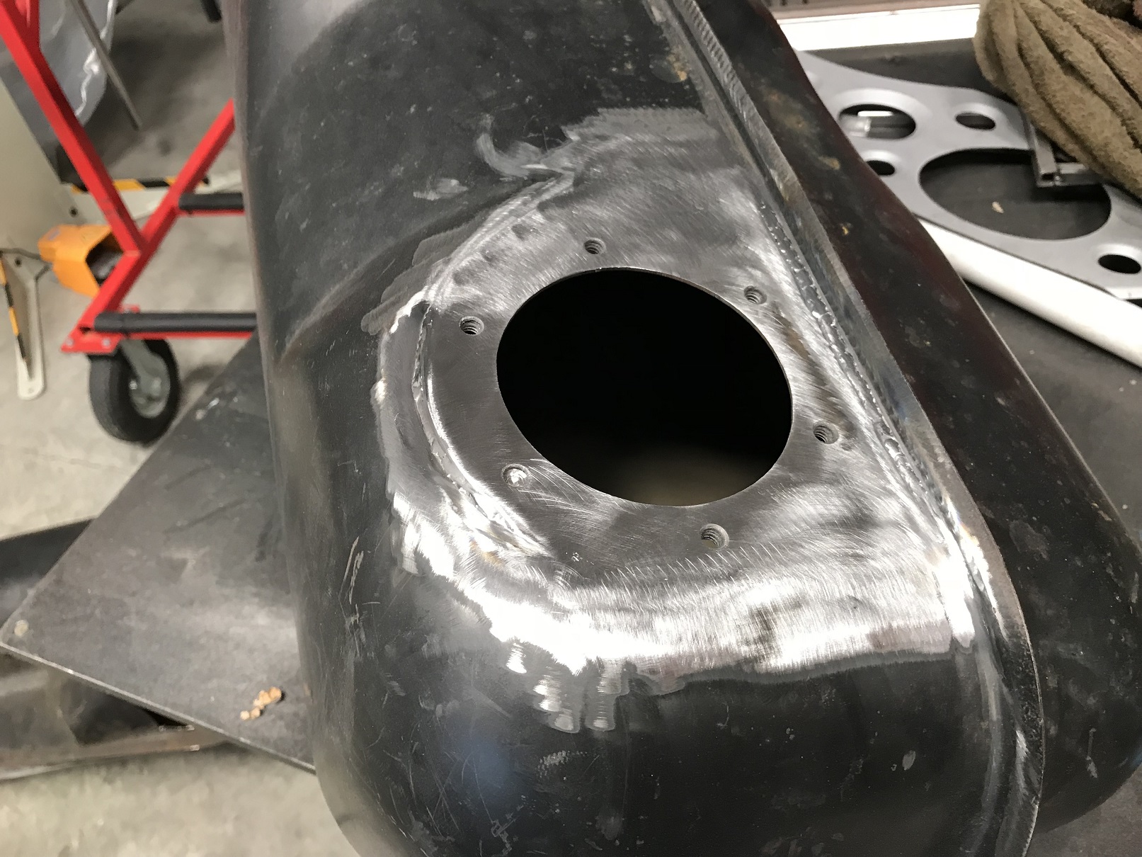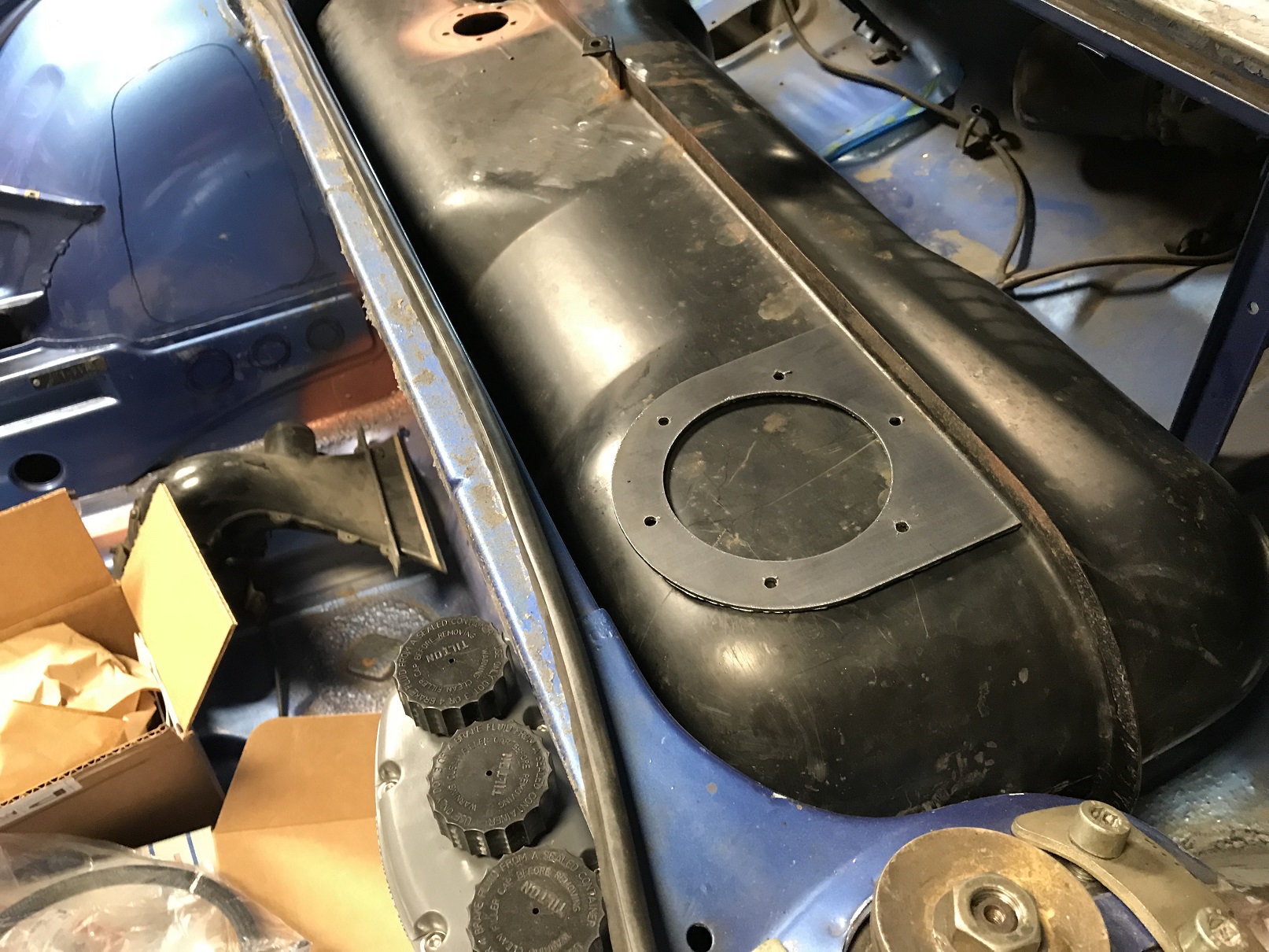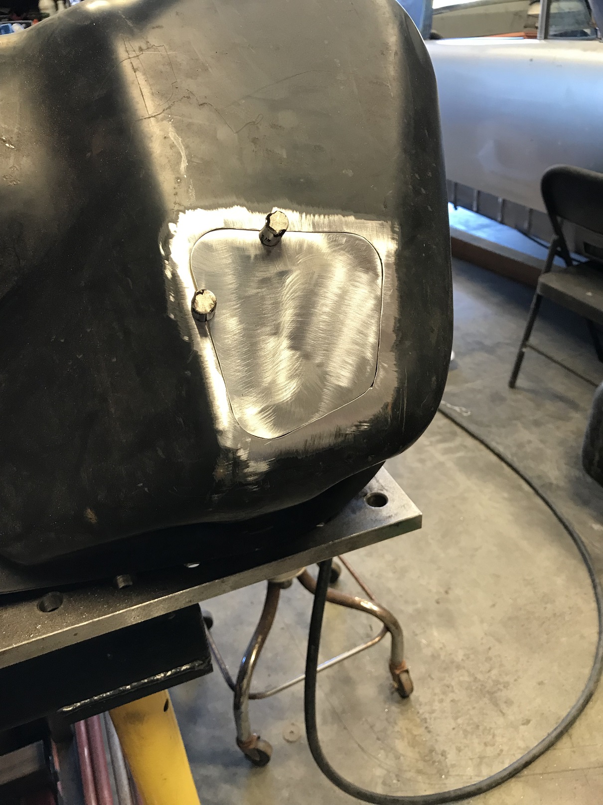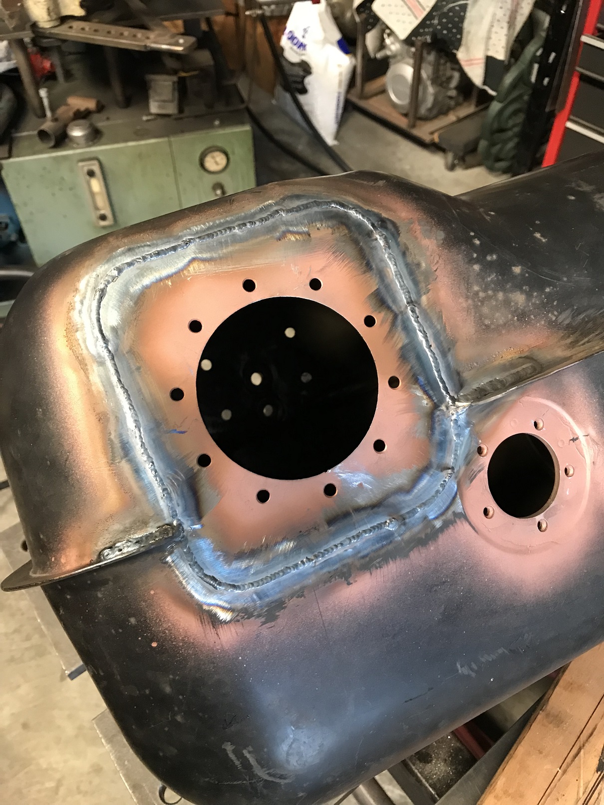 Fuel pump plate welded in. Still need to fill the spot weld holes and the original fuel in/outlets but I feel like I made some progress this weekend!