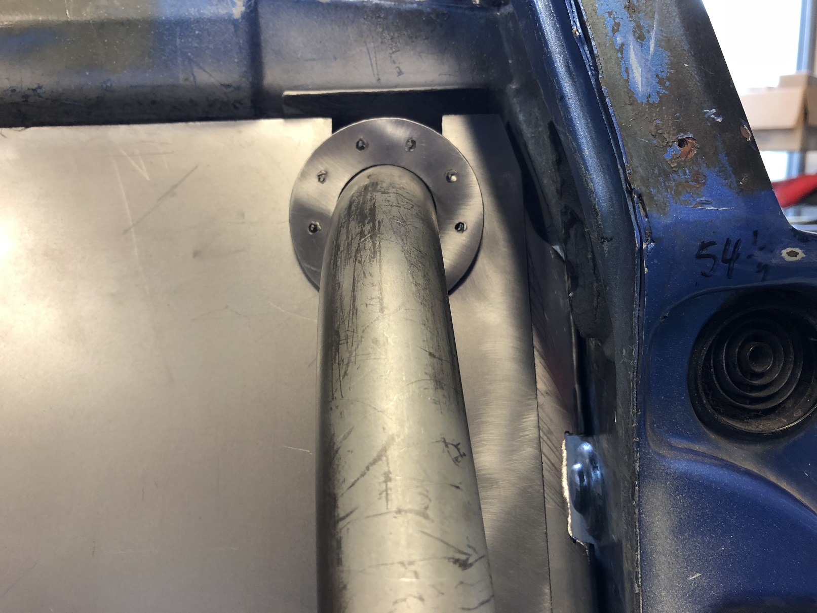 Playing around with designs to close off around the door bars. Chris love your work! It seems that you are really enjoying this project. I have a question, Ok now, how did you get that flange around the bar without cutting the bar or the flanget? Did you cut the flange in half, place , weld and grind? How did you do that? Inquiring minds want to know, since I have the same issue. |