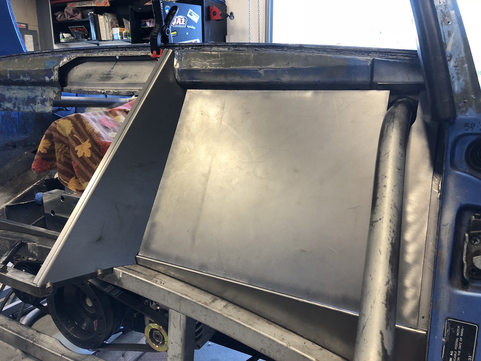 Sorta like this. Still a ways to go but I like this design a lot more. Now onto fabbing that same panel for the other side and adding a section across the top. I know that you are going to bead roll the panel for stiffness. However, you might want to use this flat unmolested panel as your template instead of bead rolling it. I would cut the panel that you are going to bead roll bigger than the template. Once you bead roll you will shrink and expand the steel, then use the template to place on your bead rolled panel to outline the shape and then cut the bead rolled panel. This may be what you were going to do, and if so, then disregard. |