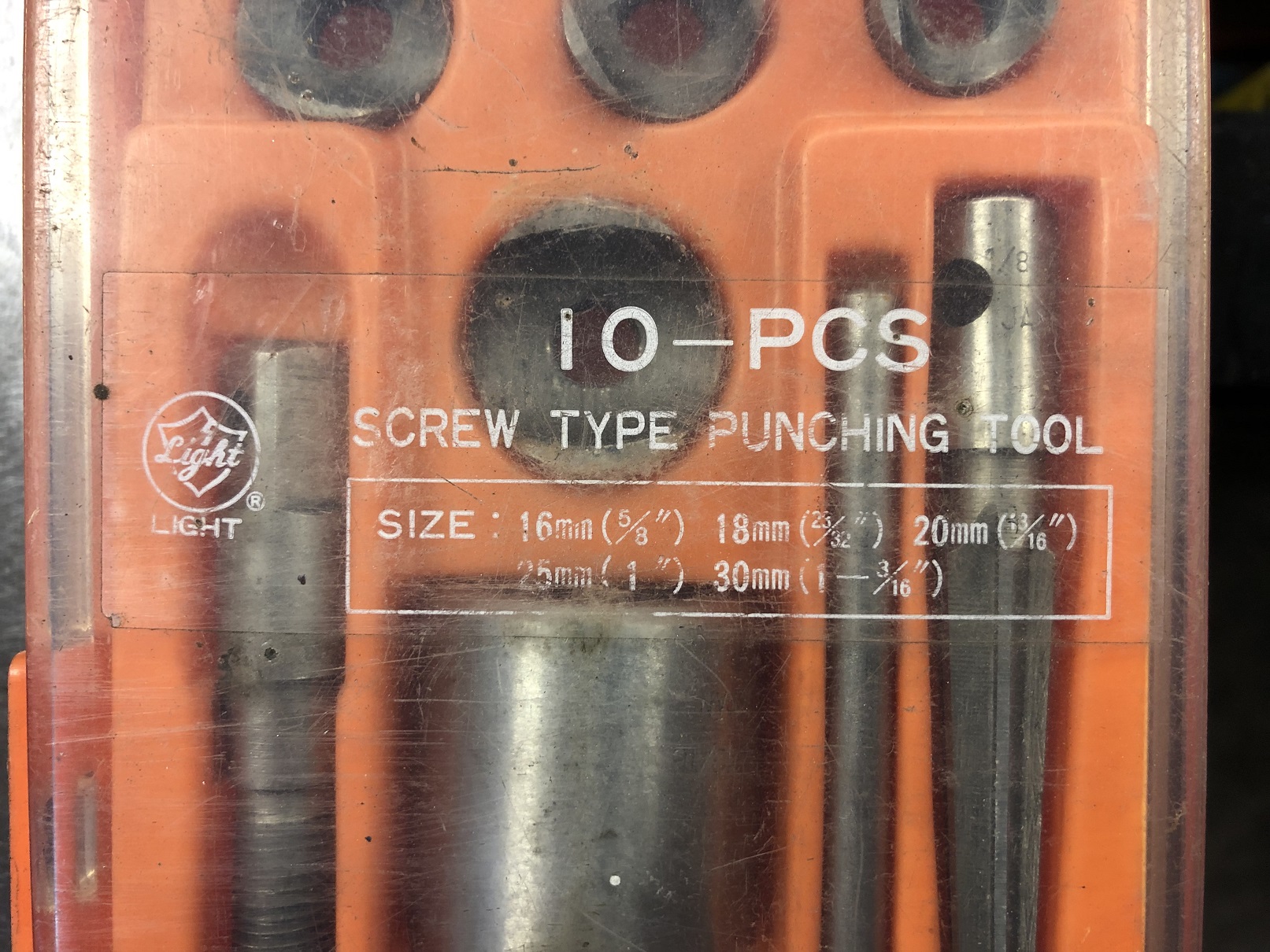 Is that the Harbor Freight kit or something more upscale? I've had a hole punch set on my wish list for awhile but haven't really needed one enough to pull the trigger. @bbrock - It's a "Light" kit. I got it as part of an estate sale where they were selling a home machine shop. I'd bet the HF set is similar. Not used too often, but they sure are handy when the need arises. Attached thumbnail(s) |