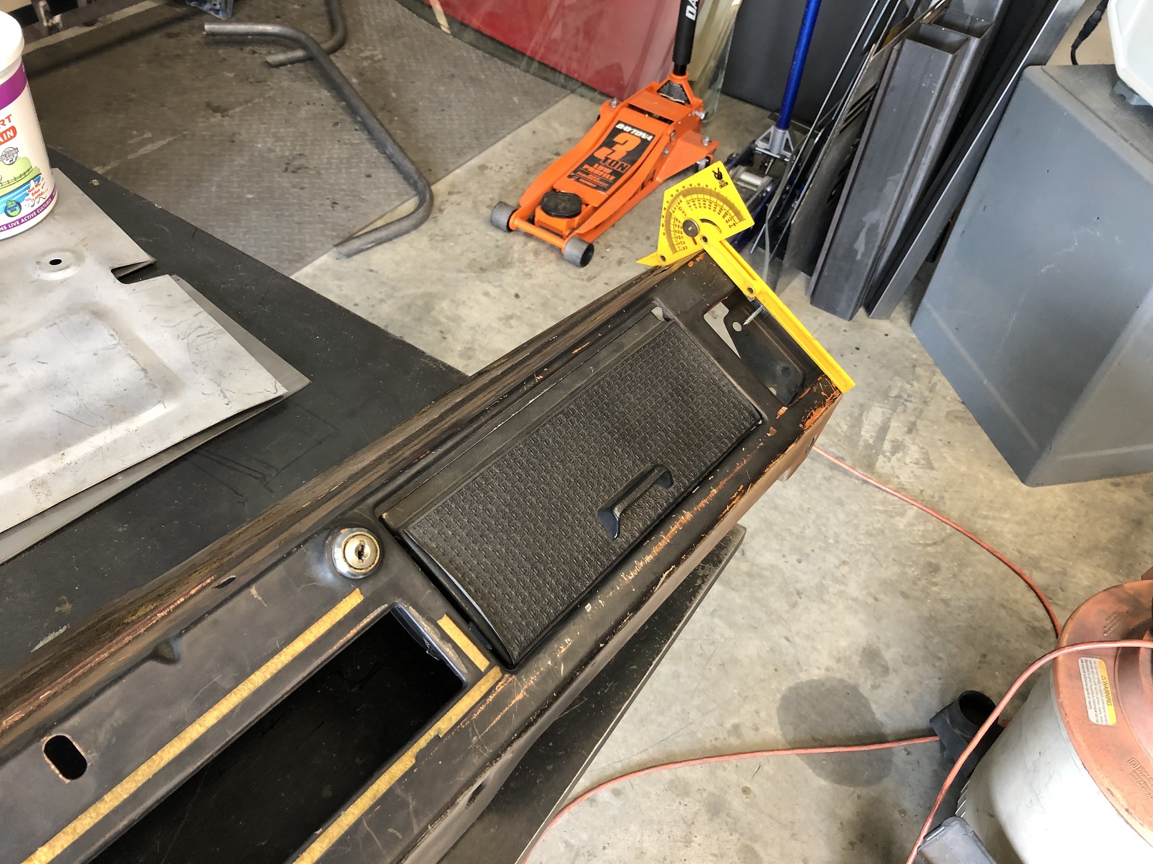 Aluminum dash: Ready? GO! Measure things. Turns out the angle from the top to the face is the same as the face to the lower return. Attached thumbnail(s) |