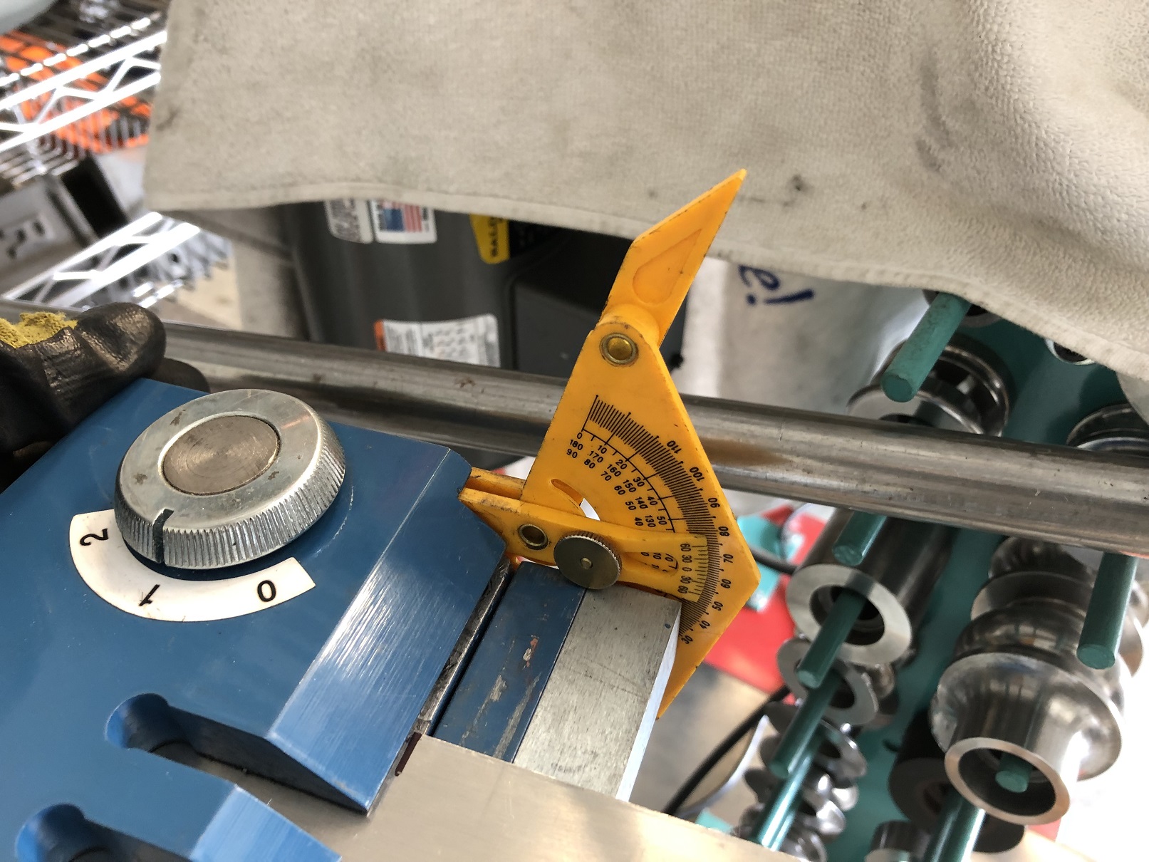 With spring back, I find it easier to match things visually. Fortunately, this little angle finder slots right into the brake and makes this a snap.