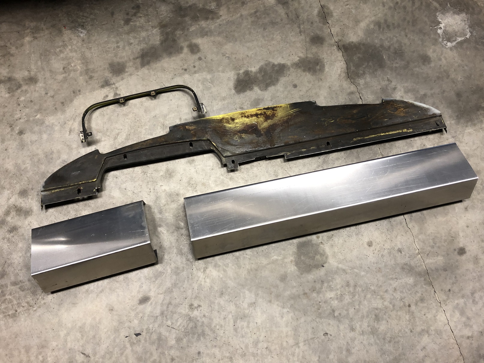 I still have to trim that back edge to length. I plan to use the stock dash upper section - the part with the defrost vent cut outs - down just past the step. Then I'll rivet this aluminum component on to it. Attached thumbnail(s) |