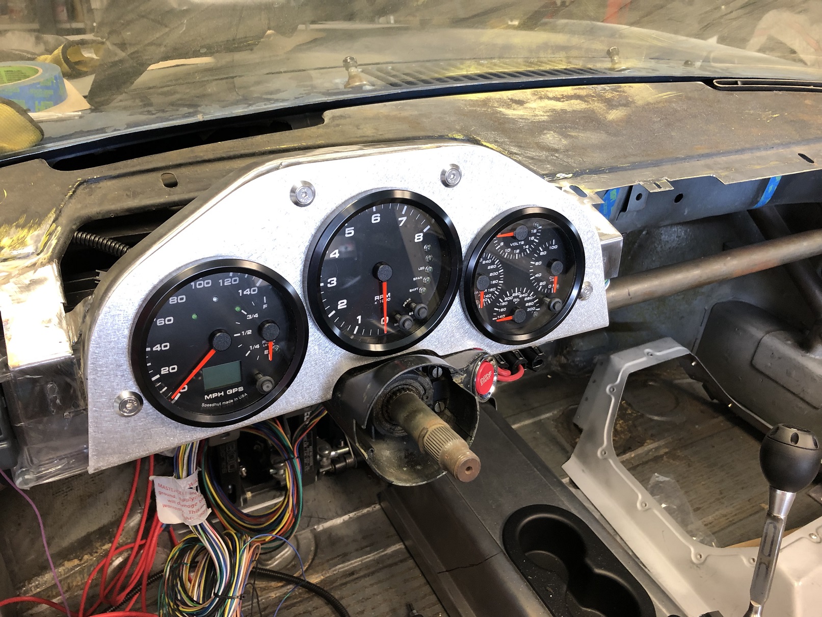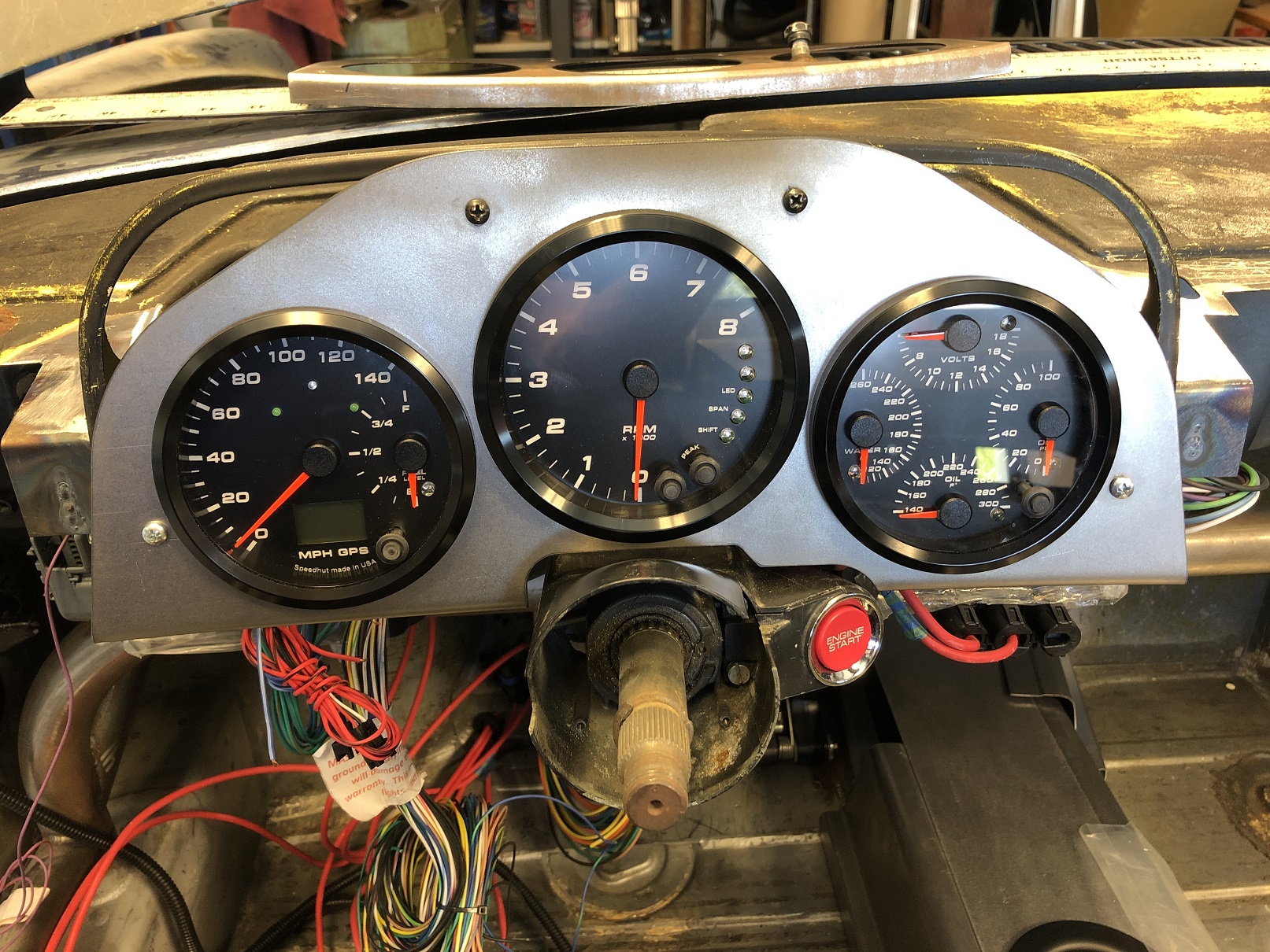 First, I added 1.25" to the stock gauge panel mounting bracket. This moves the panel a bit down and closer. Then I designed up V1 of a new gauge panel. I moved the two outer gauges down and in. This all but eliminates anything being blocked from view by the steering wheel. This shows the view I now have. Better! Attached thumbnail(s) |