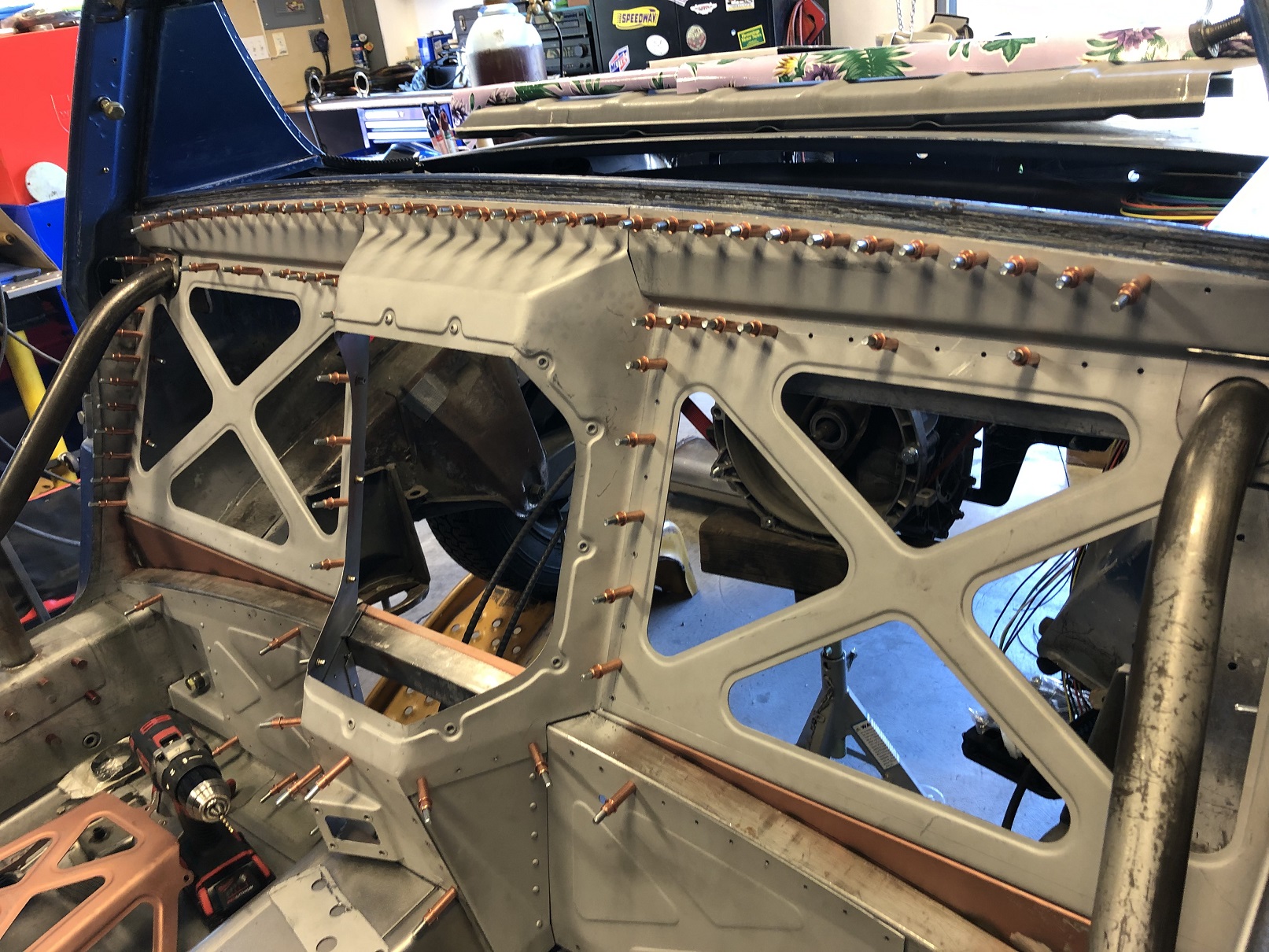 I reshaped the corner radius on the new dog house upper panel then marked and drilled the doghouse for rivets. My wife was quite funny when she saw all this in process. Her comment: "Well, you sure know the drill..." (IMG:style_emoticons/default/lol-2.gif) @Andyrew , I hope you got that Cleco stock! (IMG:style_emoticons/default/drooley.gif) I think you should leave them in there permanently! |