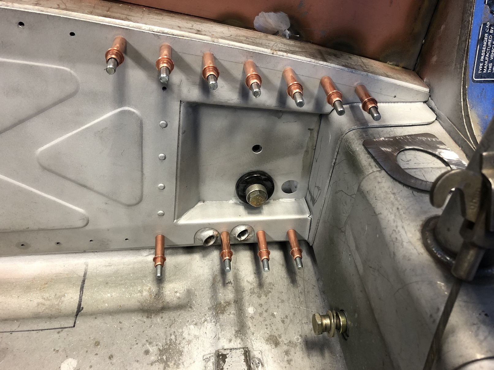 Today, it was fabbing the little extension panels for the driver side lower fire wall so that panel extends all the way to the long, above and below the seat belt retractor recess. I also took the opportunity to braze in the e-brake guide tubes. It's all coming along. Attached thumbnail(s) |