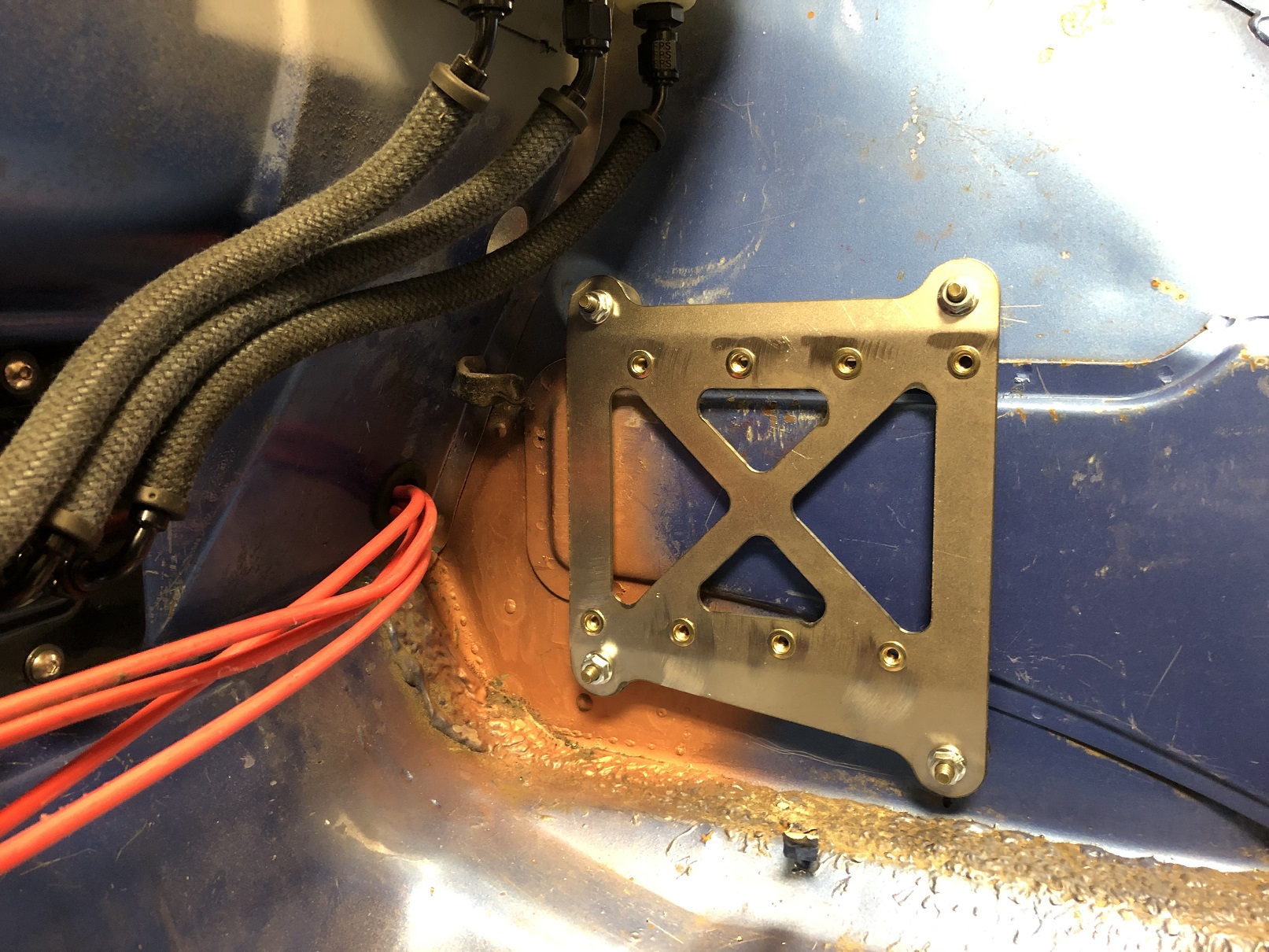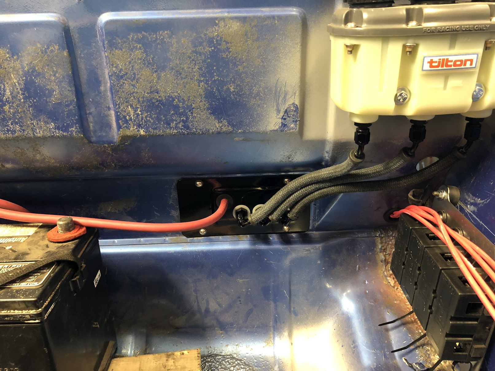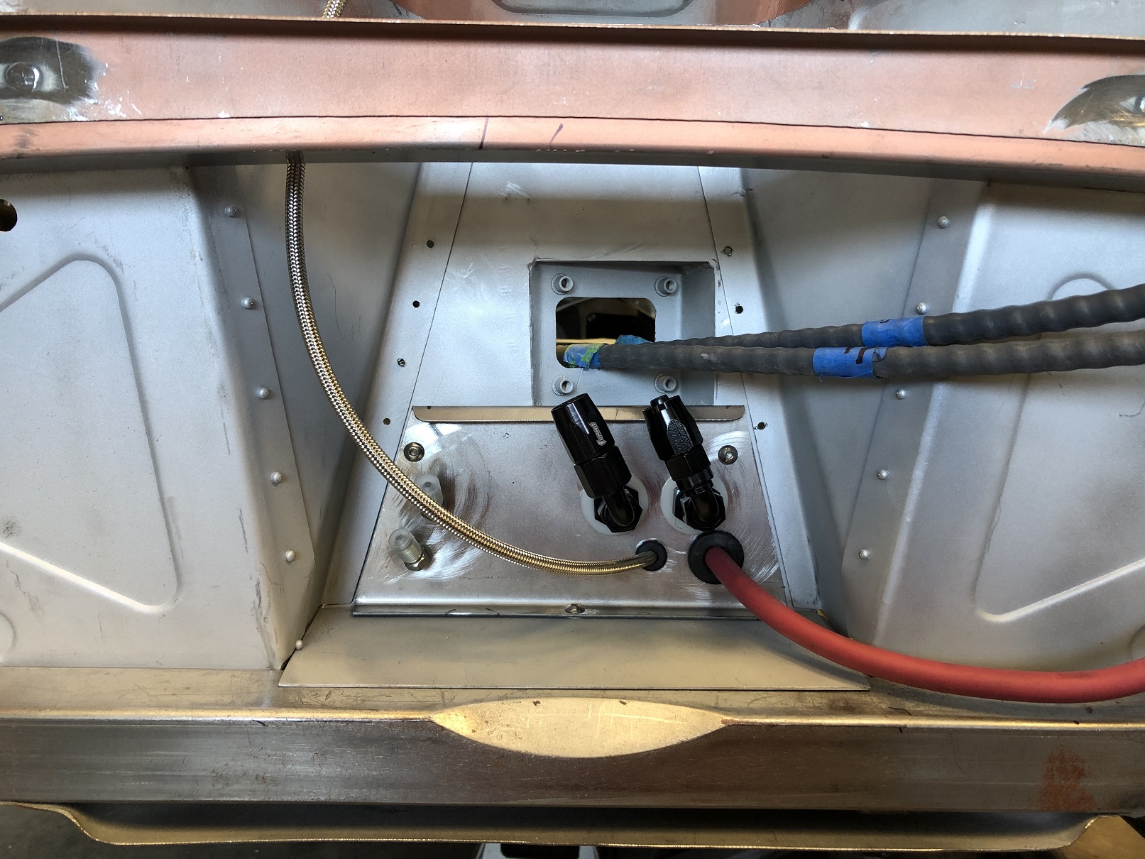 I had a feeling I might use some of the real estate on the reservoir line bulkhead plate and I was right! The main power to the starter routes nicely through it.