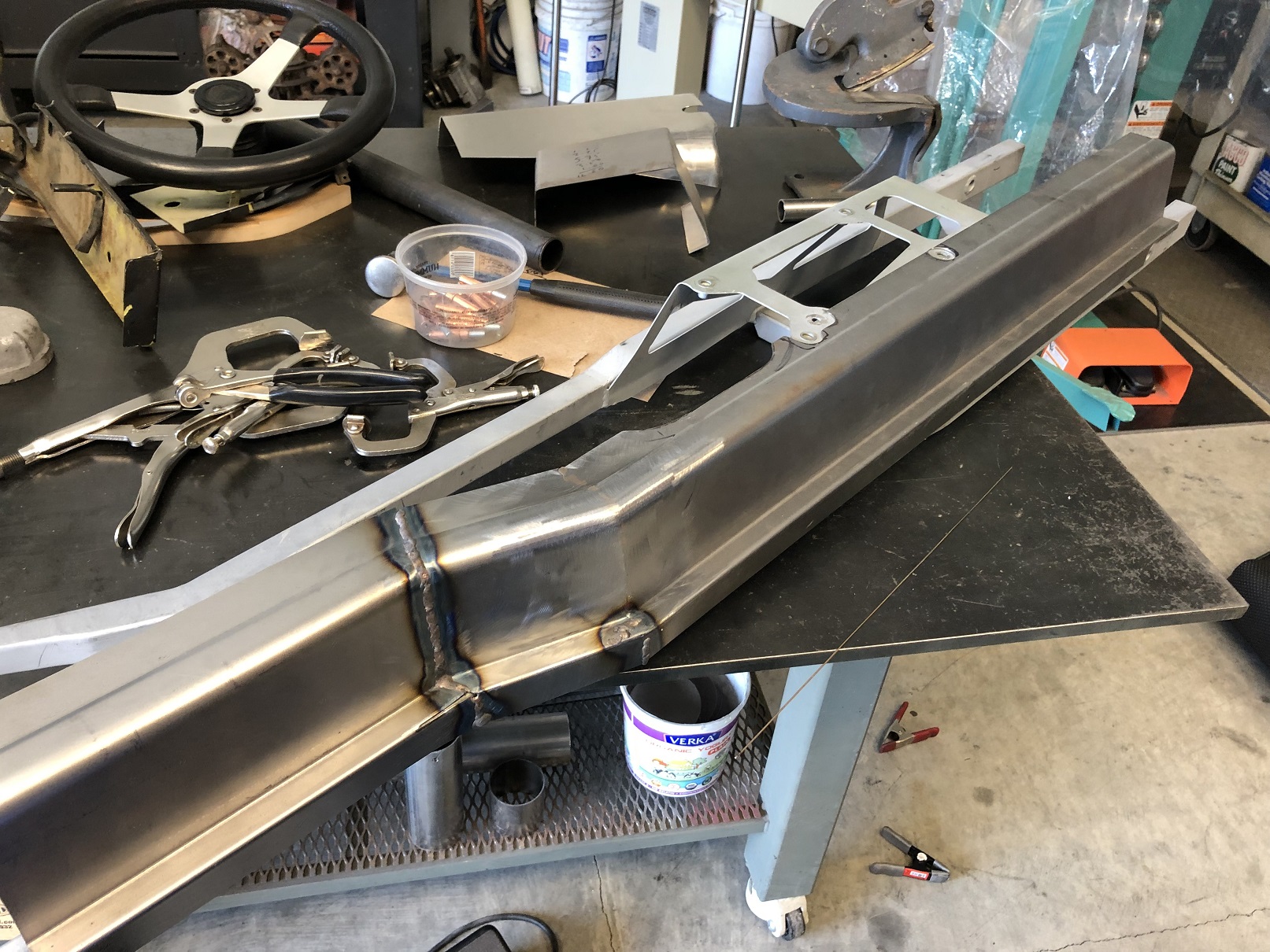 Again, it would have been far simpler if all of the planes of this cover were 90 degrees to one another, but no, I opted for a 78 degree inward tip of the vertical wall. (IMG:style_emoticons/default/dry.gif) It certainly looks better but it makes it way more work to cut and fit the needed angles. Here, I've got one transition all but metal finished and the other silicon bronze TIG'd. Attached thumbnail(s) |