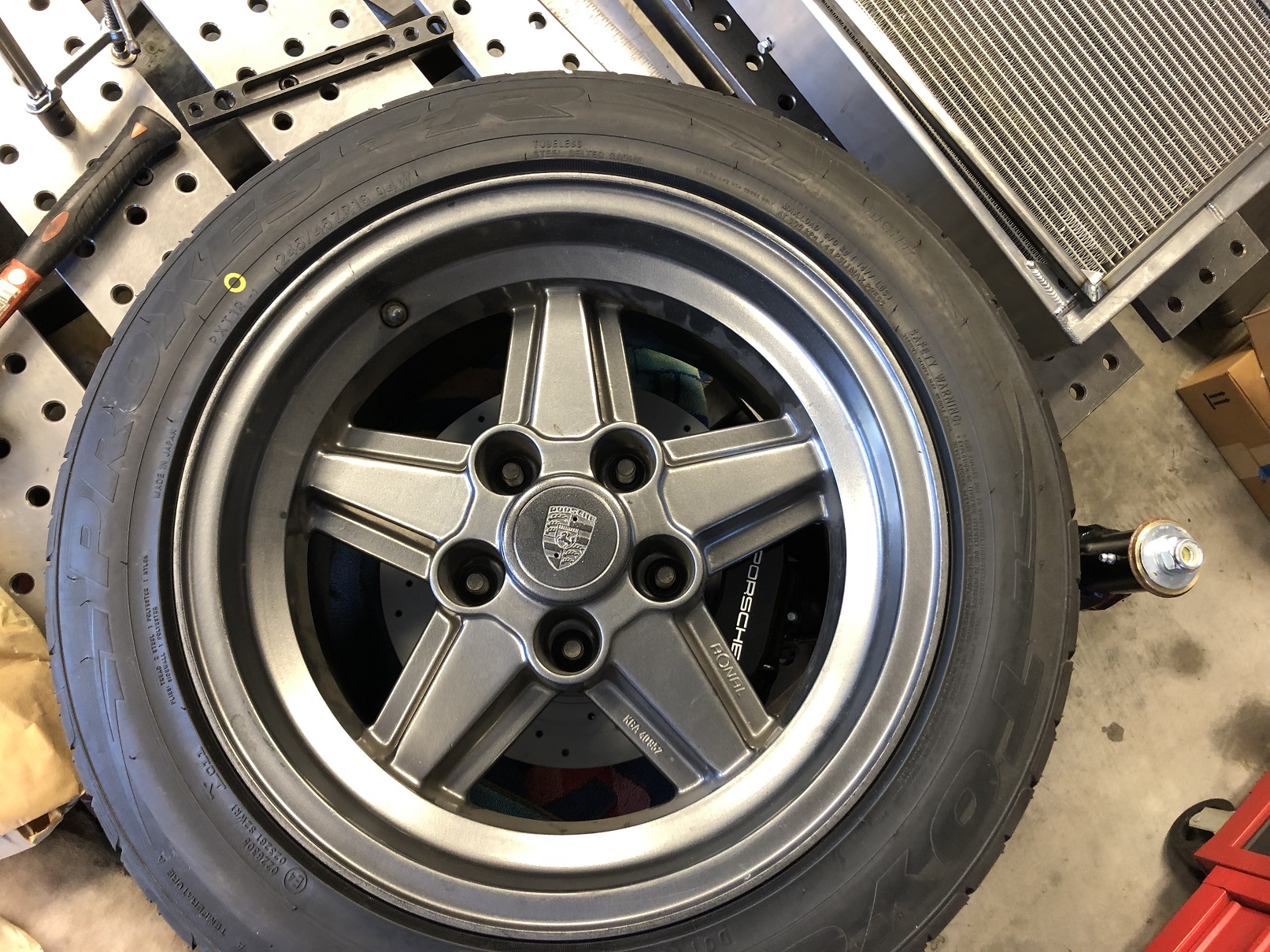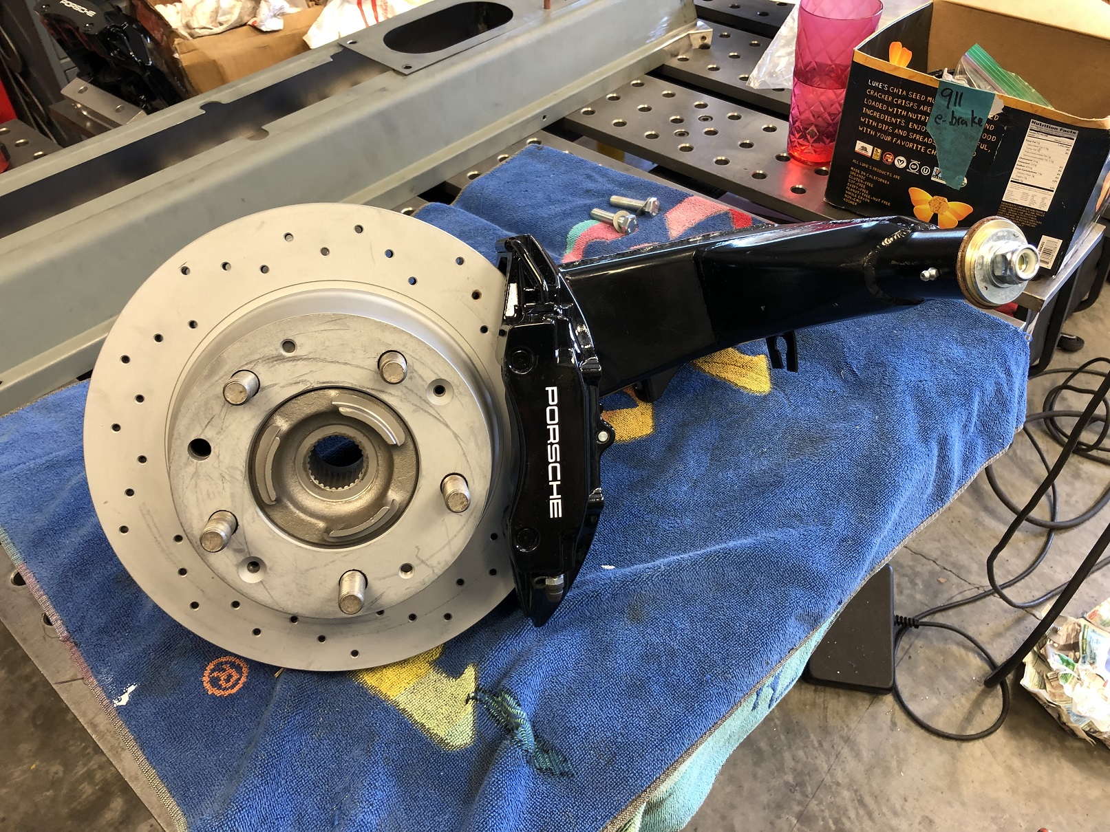 Today was fitting the Boxster calipers (using Rich Johnson's adapters) and 911 e-brake components. @ChrisFoley did his full Monty upgrades to the trailing arms. Such nice stuff! Attached thumbnail(s) |