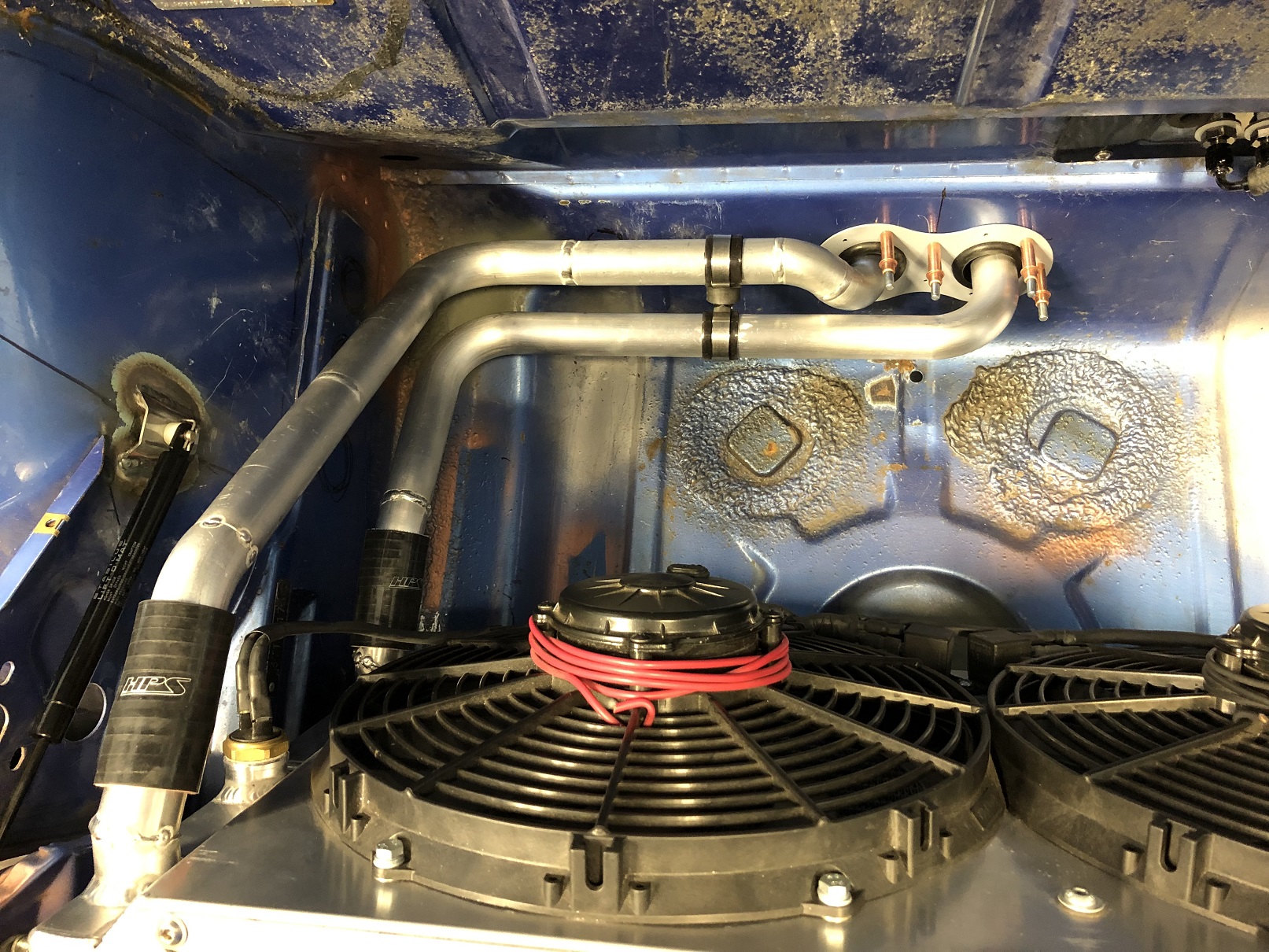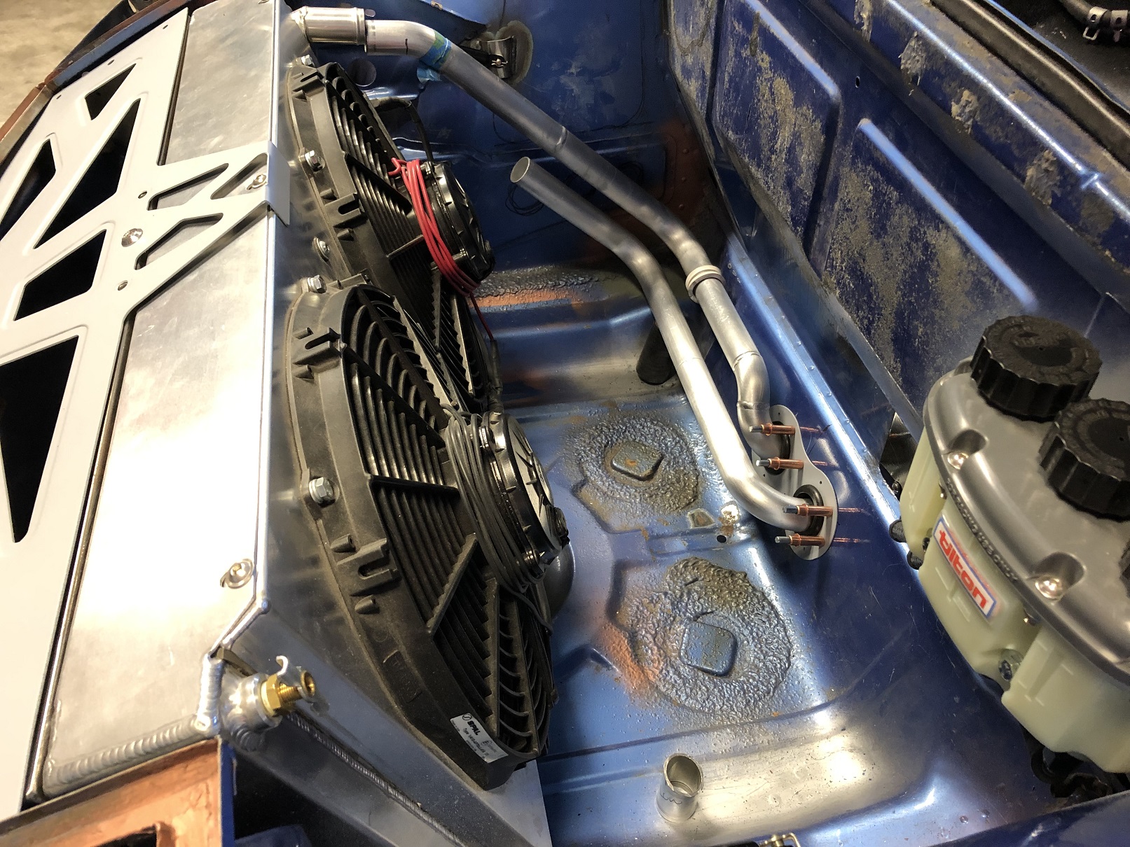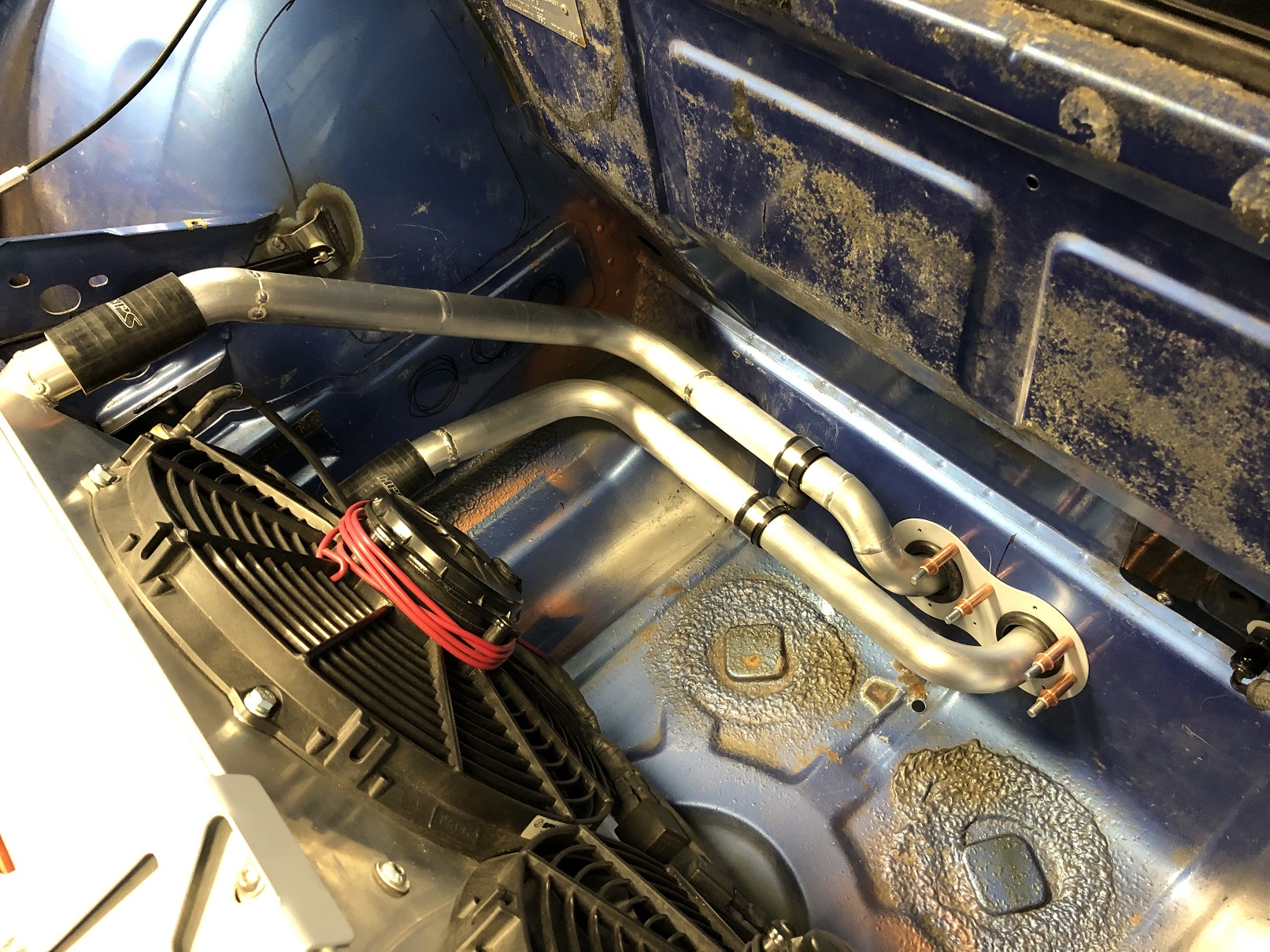 Radiator lines fab'd and fit. A couple joints to final weld and this gets checked off the to-do list.