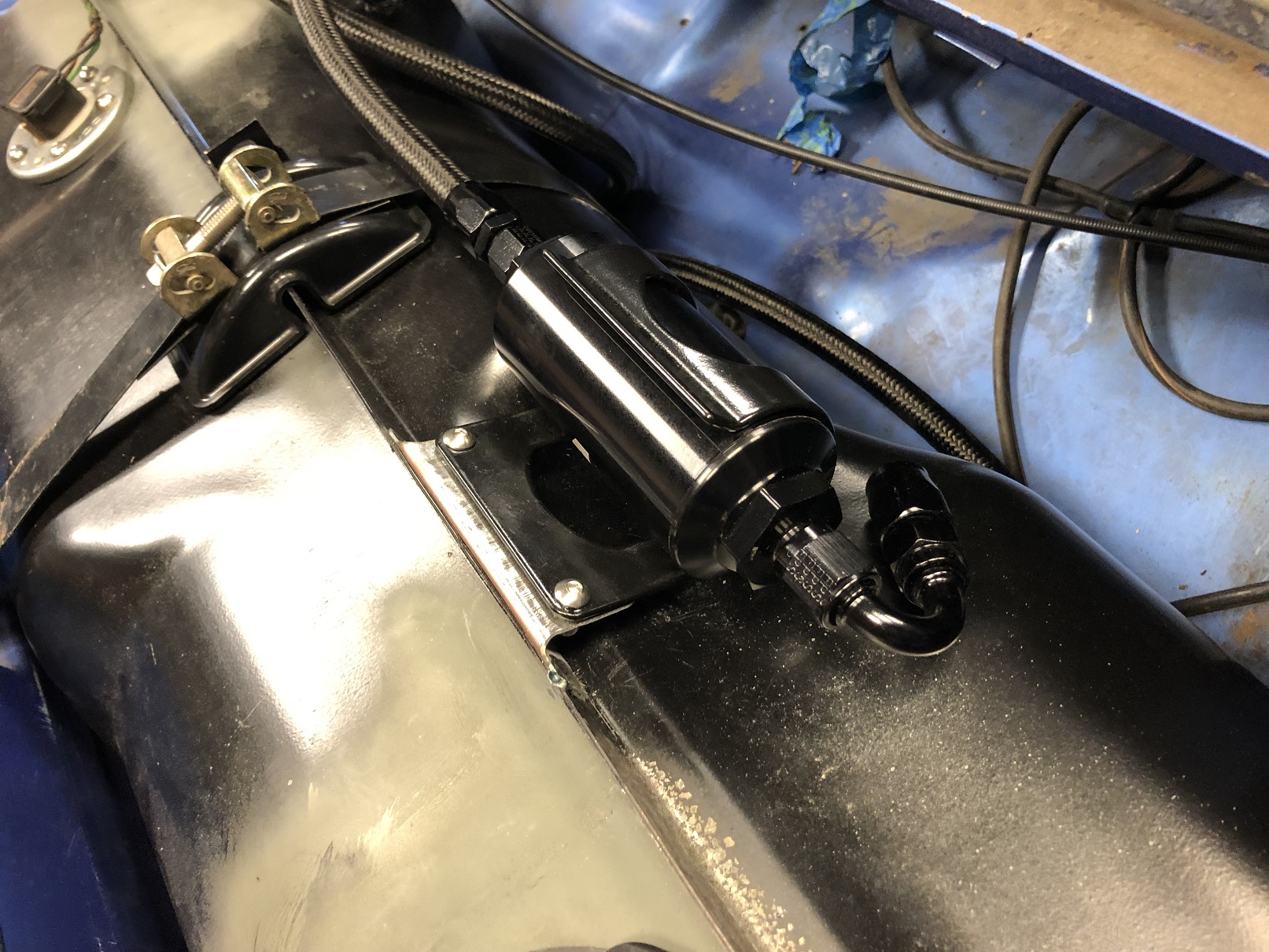 I used the magic spot welder to attach a little bracket to which the fuel filter mounts.