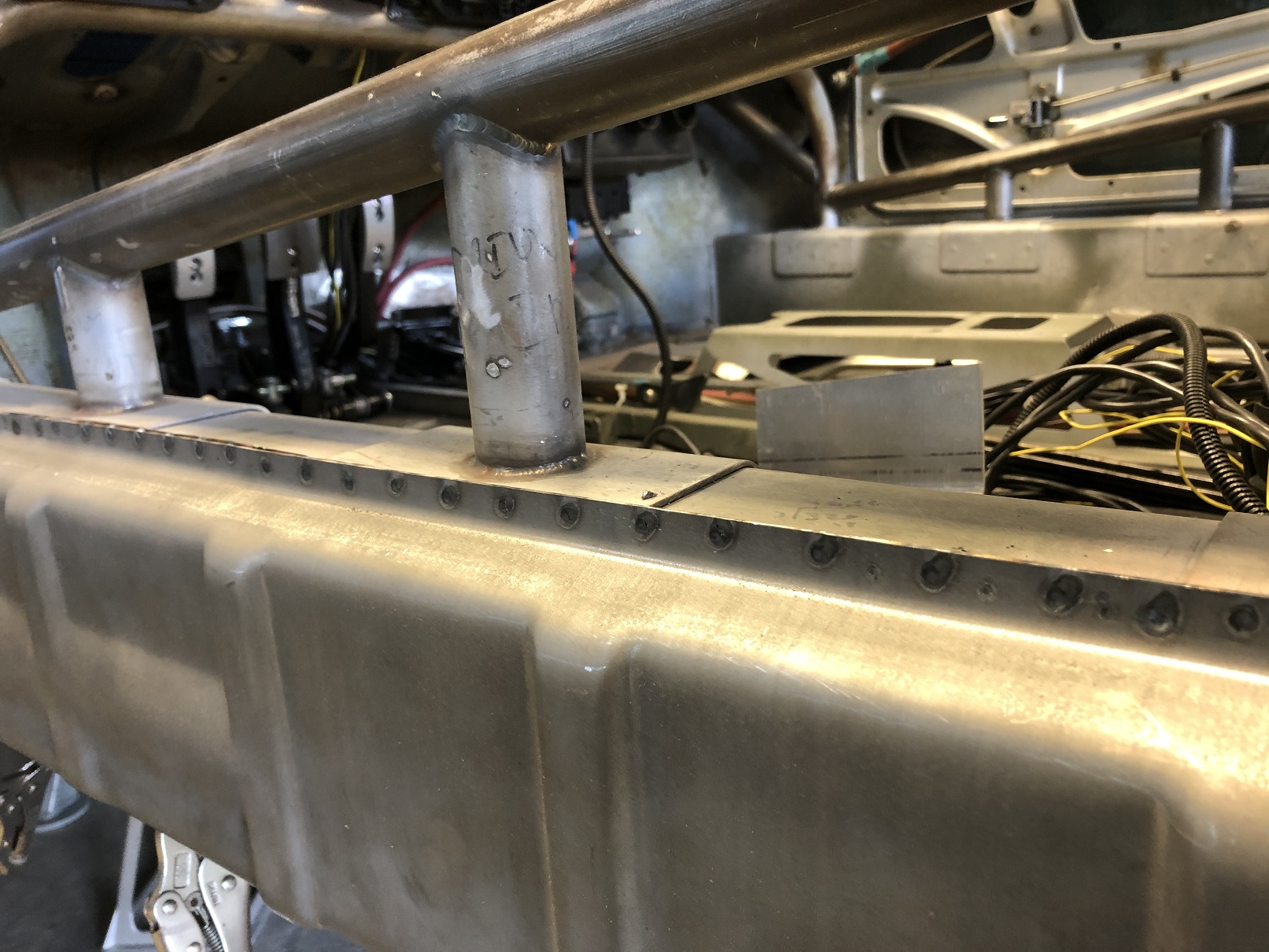 In reality the better way would be post radiator duct work, to make sure the heat goes where you want it to. (IMG:style_emoticons/default/agree.gif) I'm no thermal engineer but I don't think another layer of material in the location you're indicating would make that big a difference as most of what you'd be insulating is the hood skin. 76-914 found that his radiator setup was considerably cooler (15deg PLUS) with proper ducting from the radiator to his wheel wells. I've been pushing that for years for good builds as I think it would make a big difference not in performance, but the ability to run a smaller radiator, and make a small useable portion of the front trunk. Its still something on my short list of projects. Also, Love spot welders, That looks silly good! |