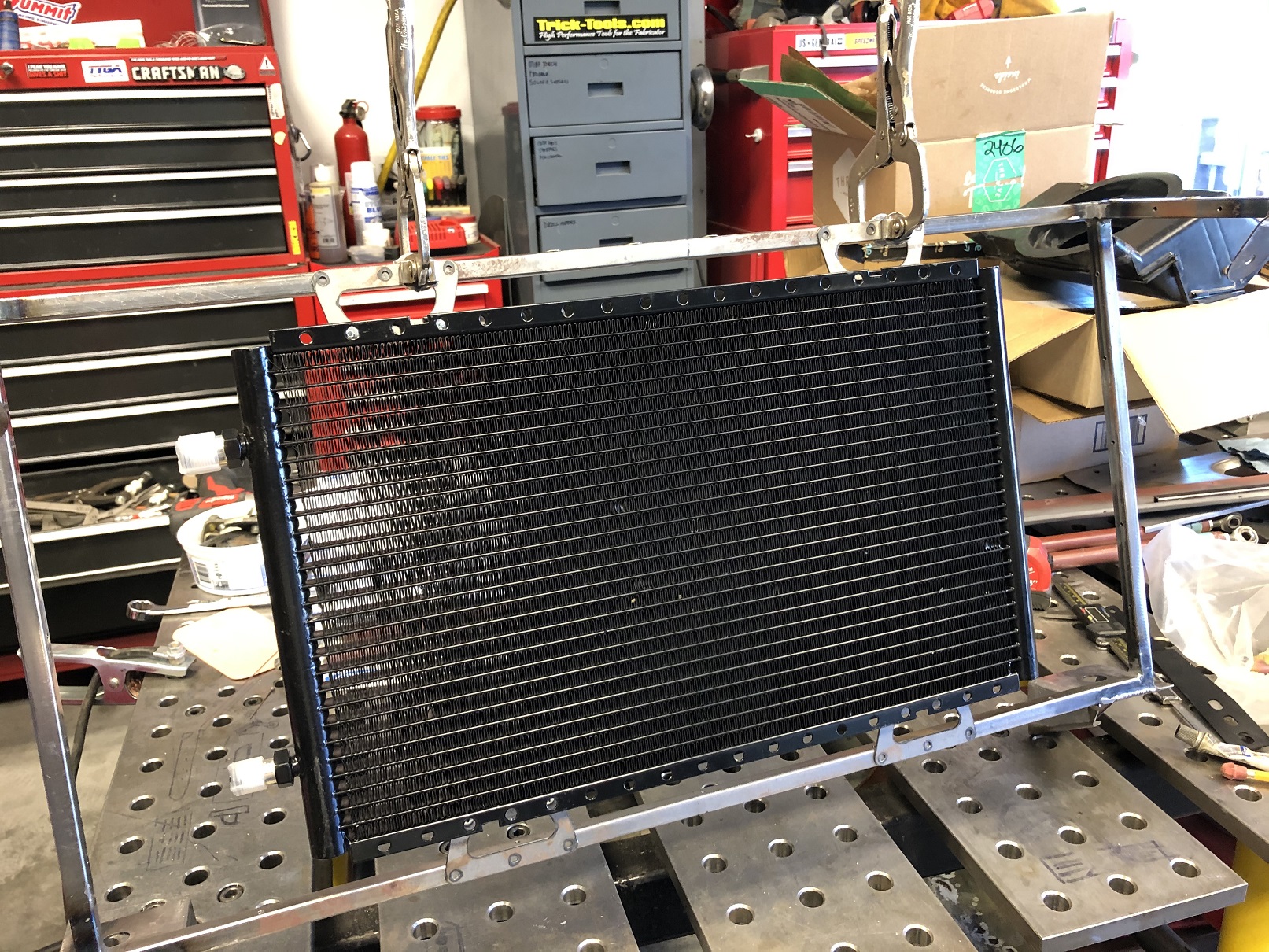 I was about to send a few pieces out to powder coat but, thankfully, remembered I needed to add brackets to the radiator support to attach the A/C condenser.