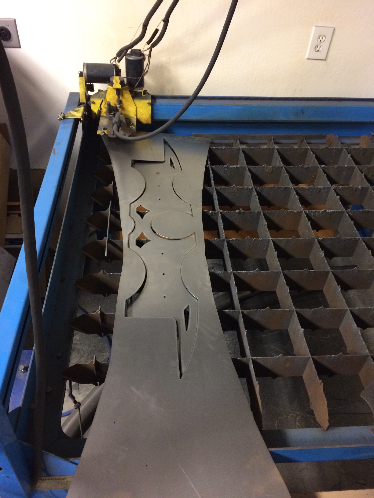 Once that was done, I wanted to get some ideas for the filler plate so I made up a paper template. I measured it to get the dimensions for the plasma table's design software. Then I started messing with various design elements. Attached image(s)
