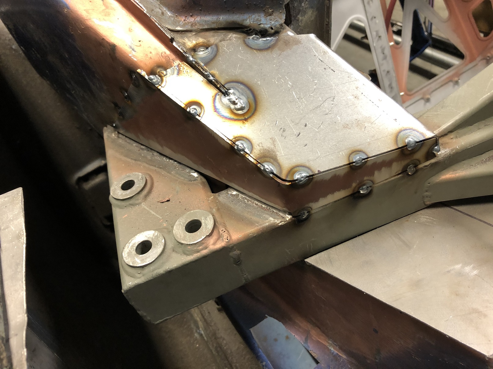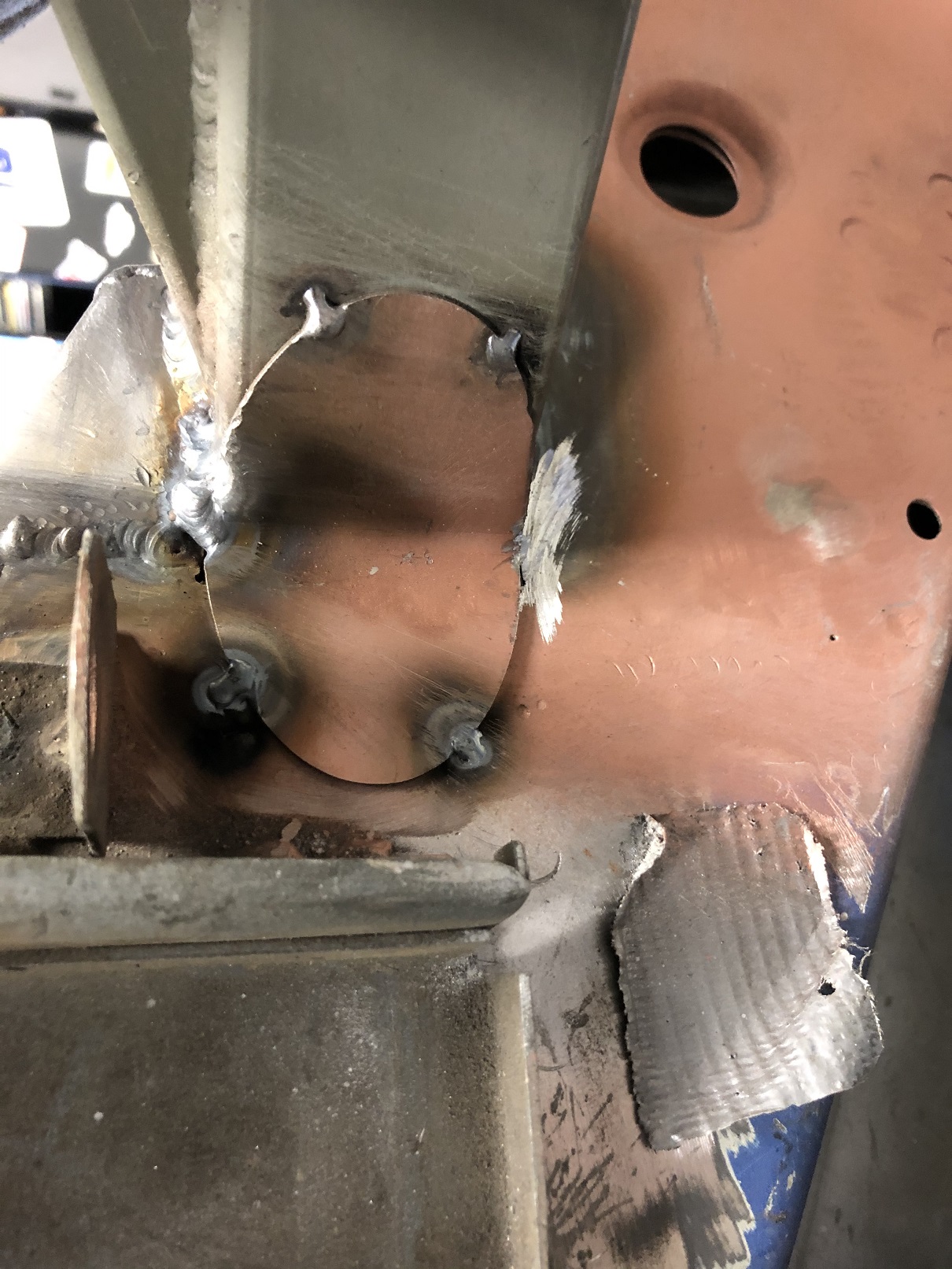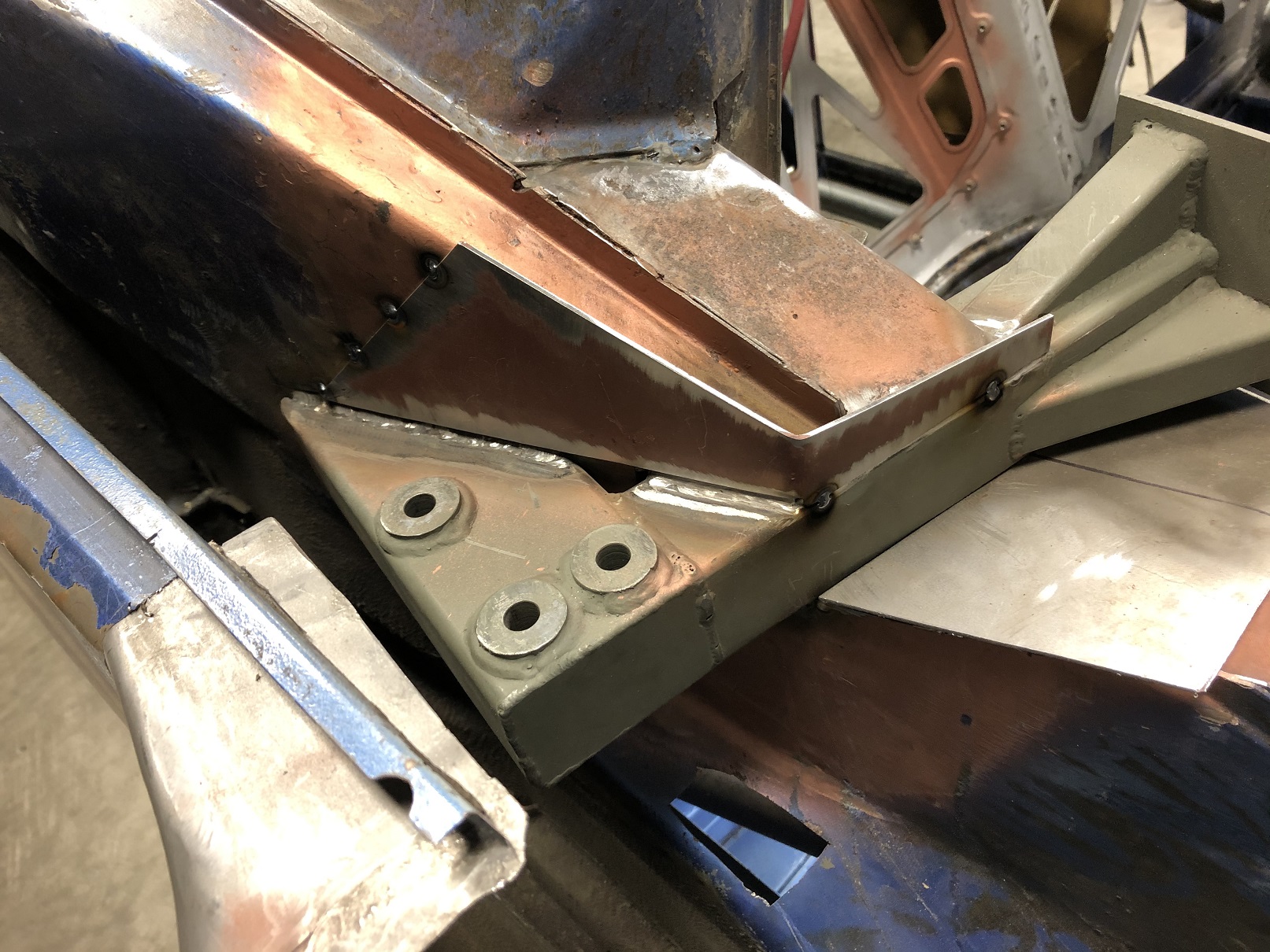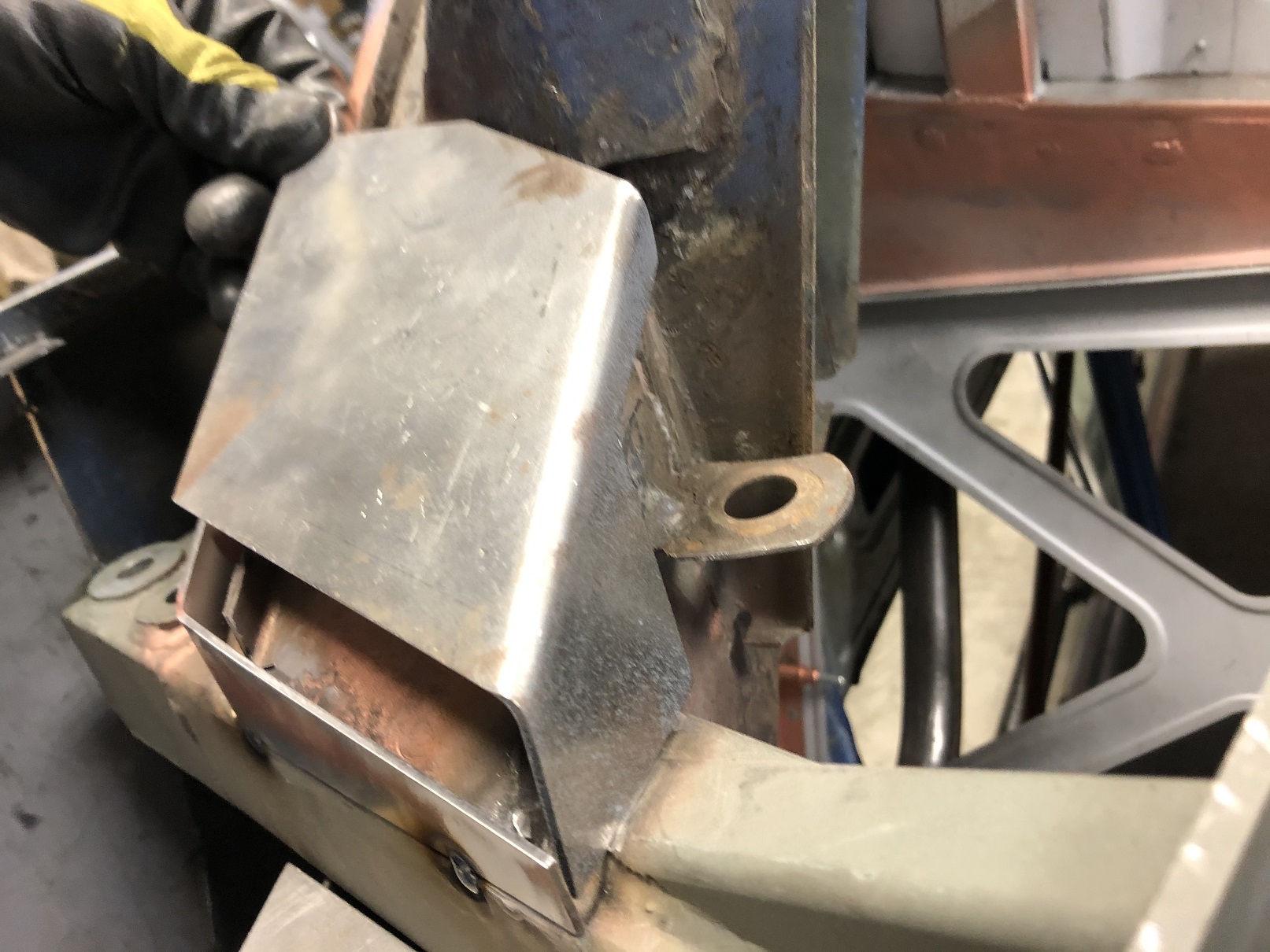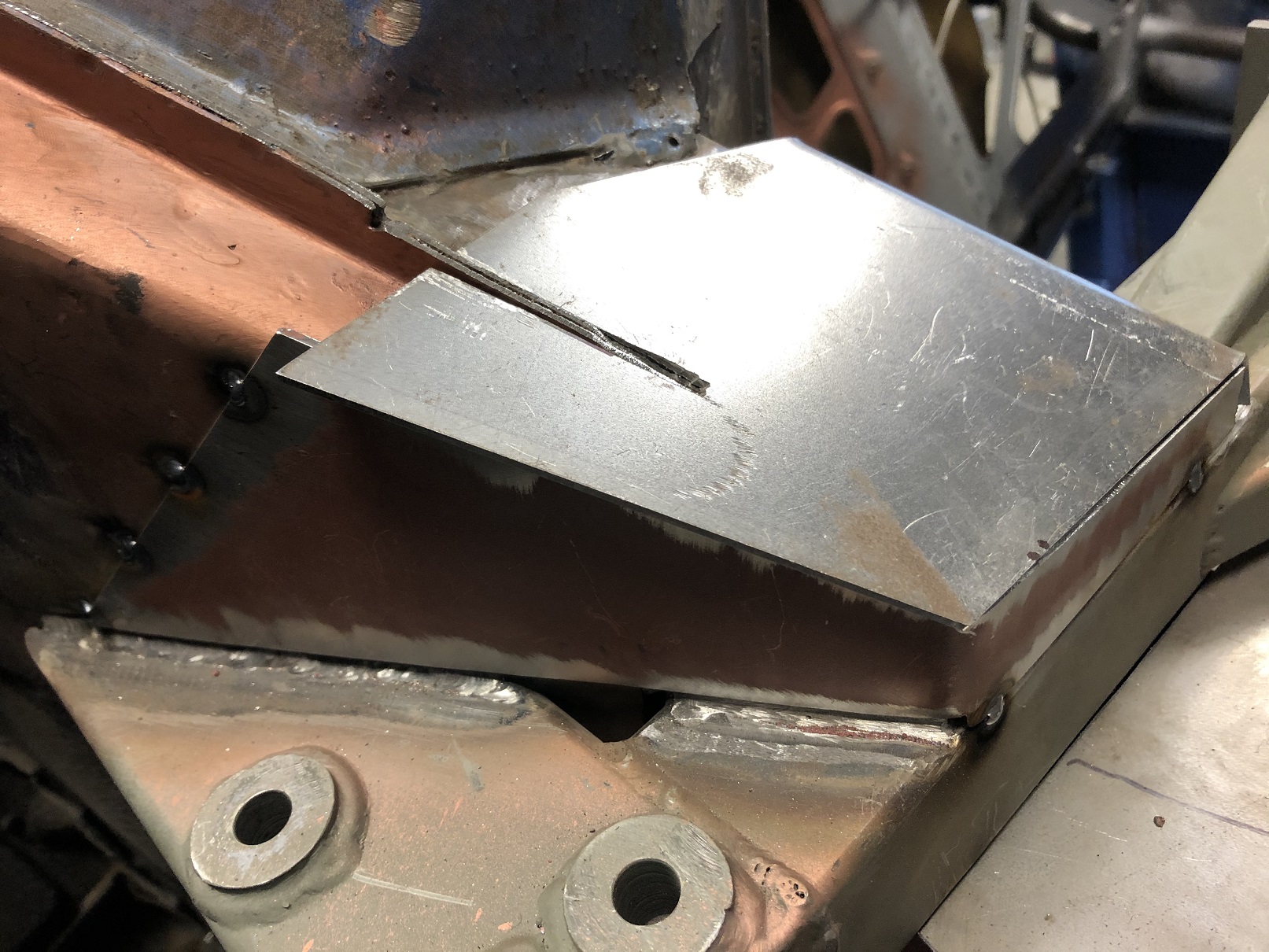 The first of the driver side sheet metal support plates are trimmed and (mostly) welded in.