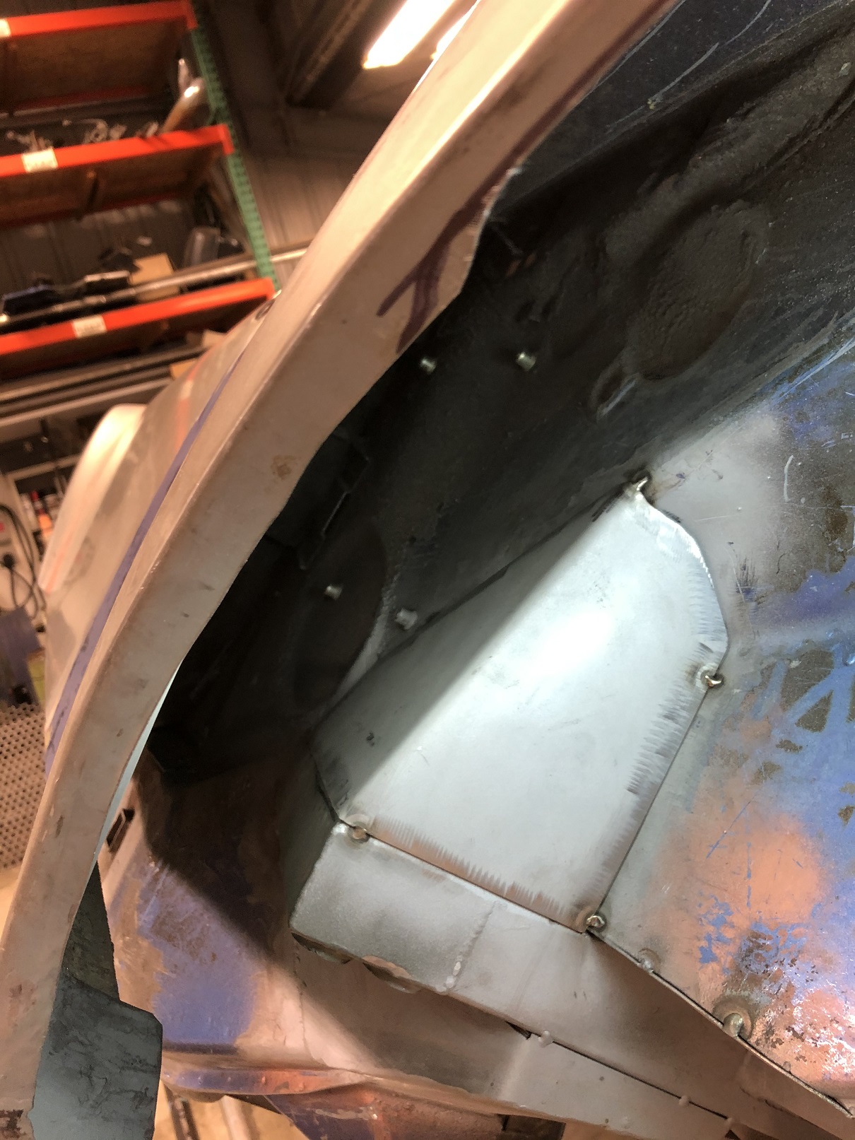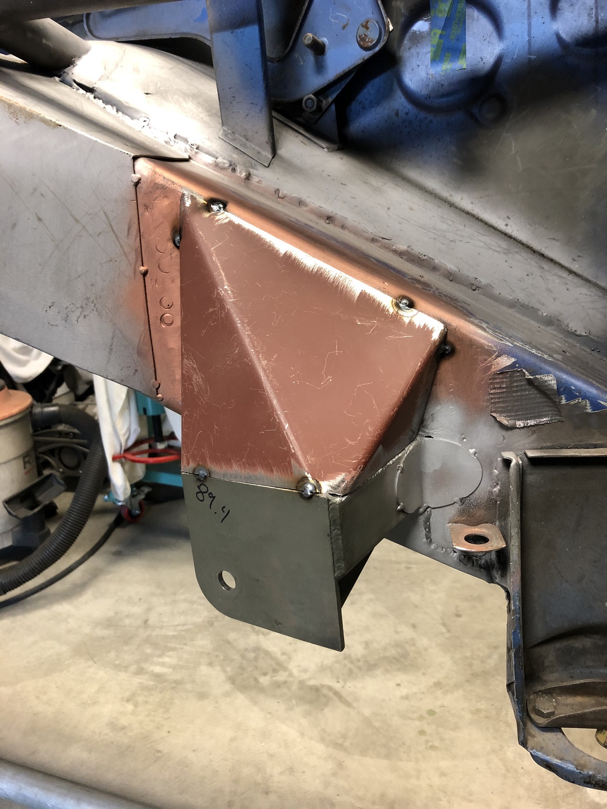 On the driver side, I ended up having to weld on about a 3/16" extension to the front, inside vertical edge of the plate to get a nice fit round the entire plate. Again, no surprise in that we know there's all sorts of variation across 914 chassis. Attached thumbnail(s) |