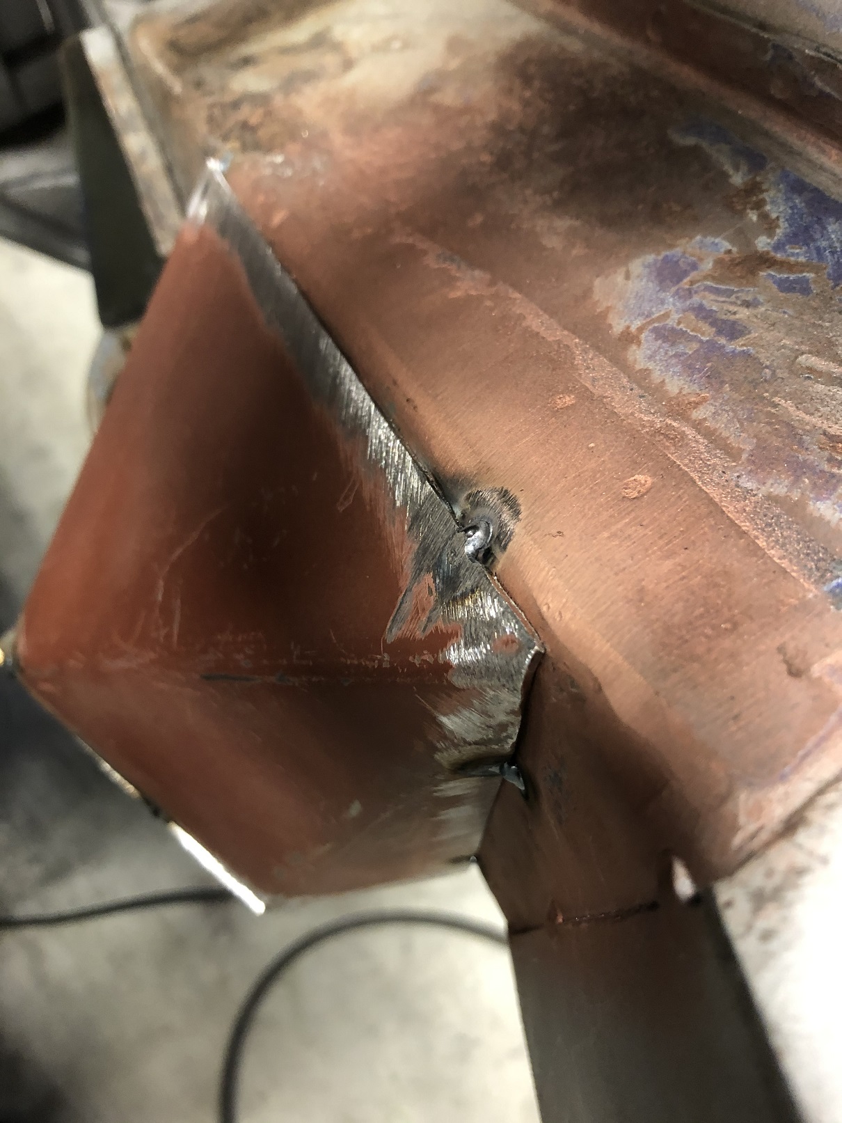 Lather, rinse, repeat. For some reason, I ended up with some sort of contamination on the under side of the one plate and ended up with a couple surprise "POPs" that left me with a couple holes. No worries, they'll be addressed during final welding.