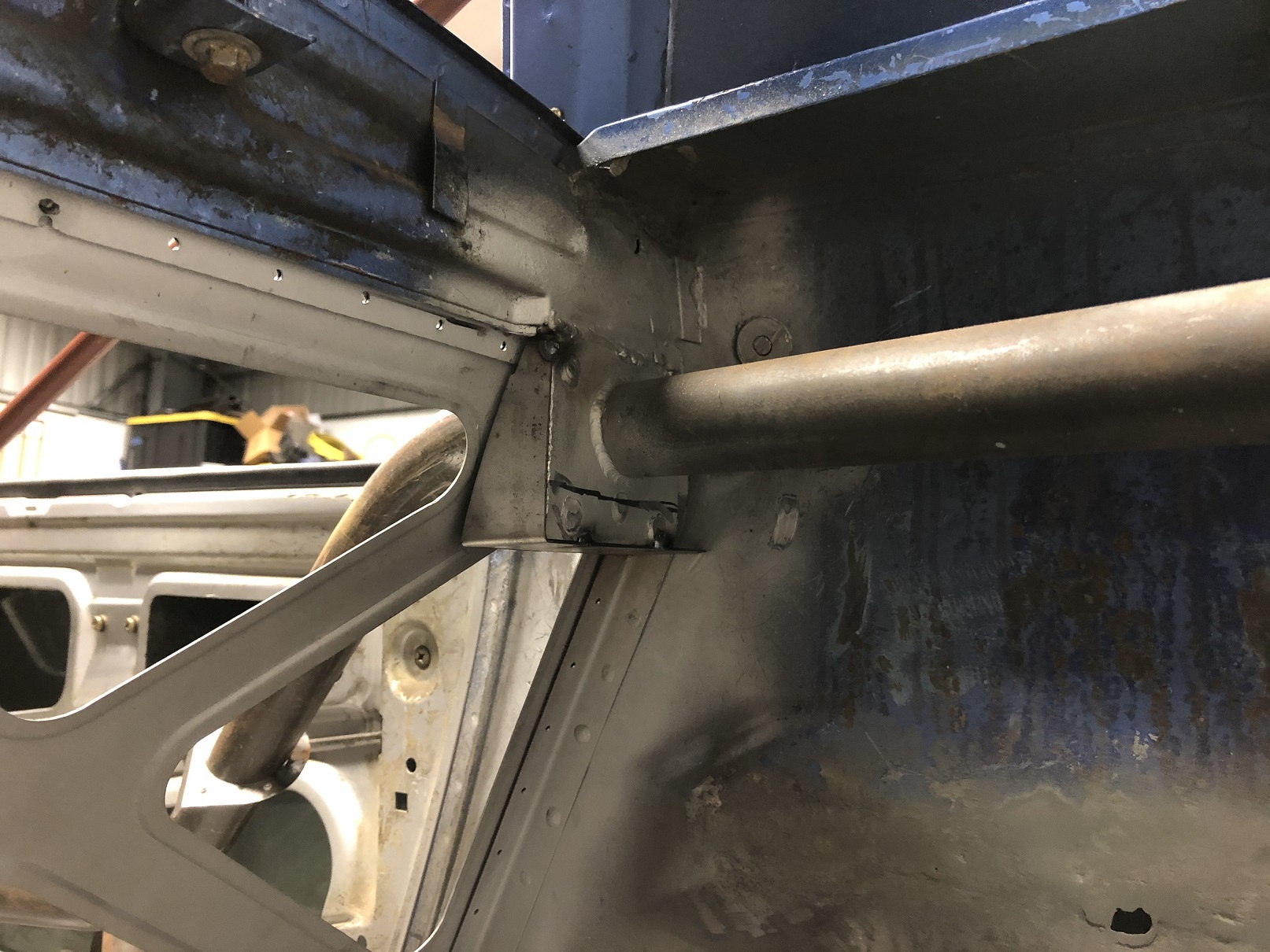 The door bars and rear suspension tower brace bars were installed prior to my fabulous idea of a custom fire wall. The aforementioned bars are welded to plates that were plug welded to each other when the factory fire wall was there. Now that things are "different", these plates ended up sort of hanging in space. They are plenty strong and are pretty well tied in to the chassis so I'm really just trying to visually tidy things up. After a bit of head scratching, I decided to plate them in. This first pic shows what's left of the original fire wall below the rear window on the driver side. The sharpie line is what will be removed and gives you an idea of how the plates look like they're just hanging there. The second pic is the passenger side showing the fire wall trimmed to final shape and the beginnings of the plating in of the plates. Yes, I have a full plate! (IMG:style_emoticons/default/av-943.gif) Attached thumbnail(s) |