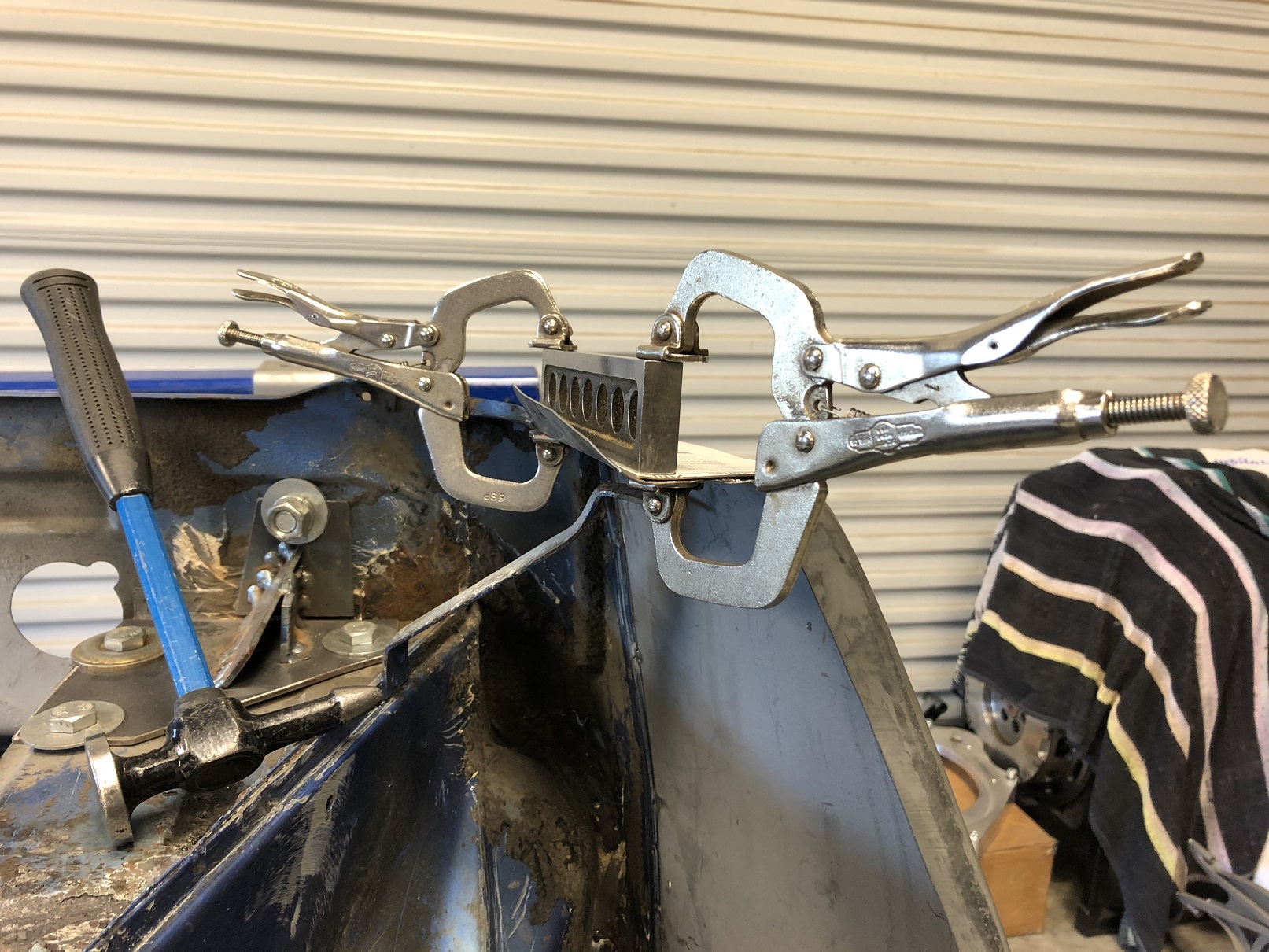 Tack, weld a bit, grind, hammer/dolly, check for alignment, tweak as needed. Repeat until done. Attached thumbnail(s) |