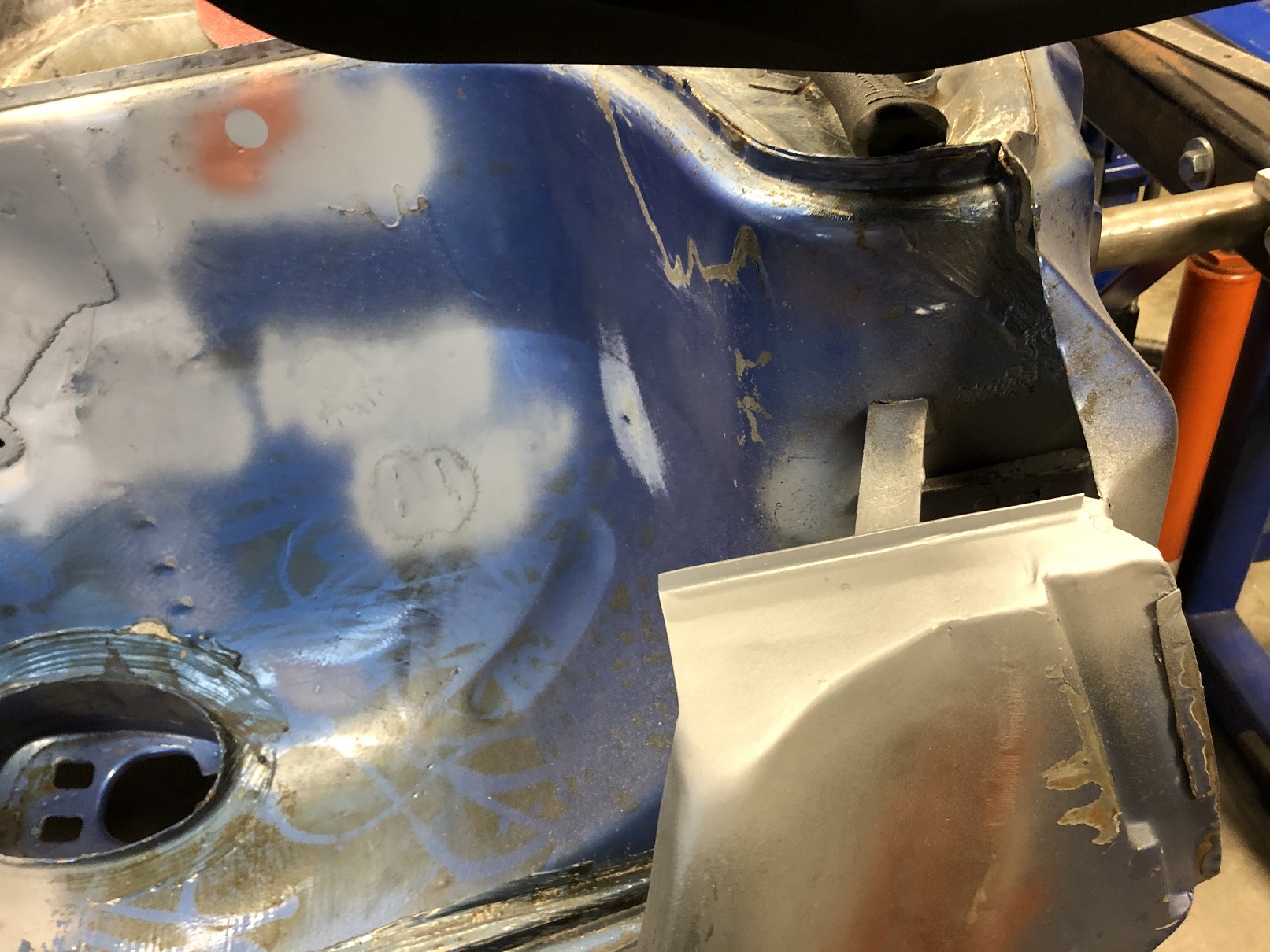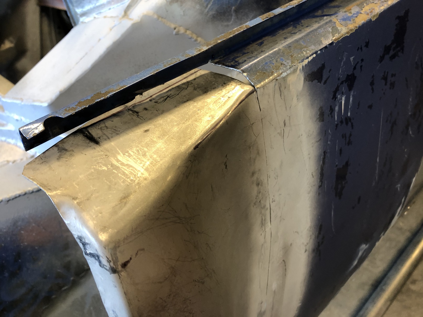 Then I used a curved dolly to try and persuade the curve to reappear. A bit hard to tell from the pic but it worked! The flat spot is gone. I'll weld things up and call this area done. Again, it going to require filler. But overall, another great learning, experience and skill development opportunity. When I do the other side, I think I'll make the relief cut first to see if I can "preserve the curve" as I'm crisping up those corners/bends. Attached thumbnail(s) |
