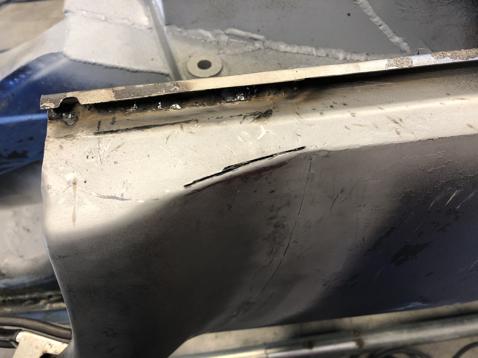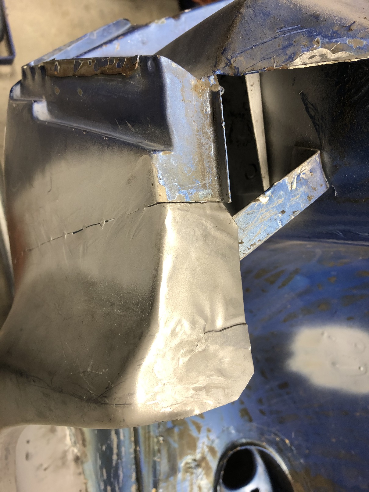 Bend that small section back into position, lots of hammer and dolly work, weld things up, grind as needed, hammer and dolly, grind and conditioning disc everything and it's essentially done.