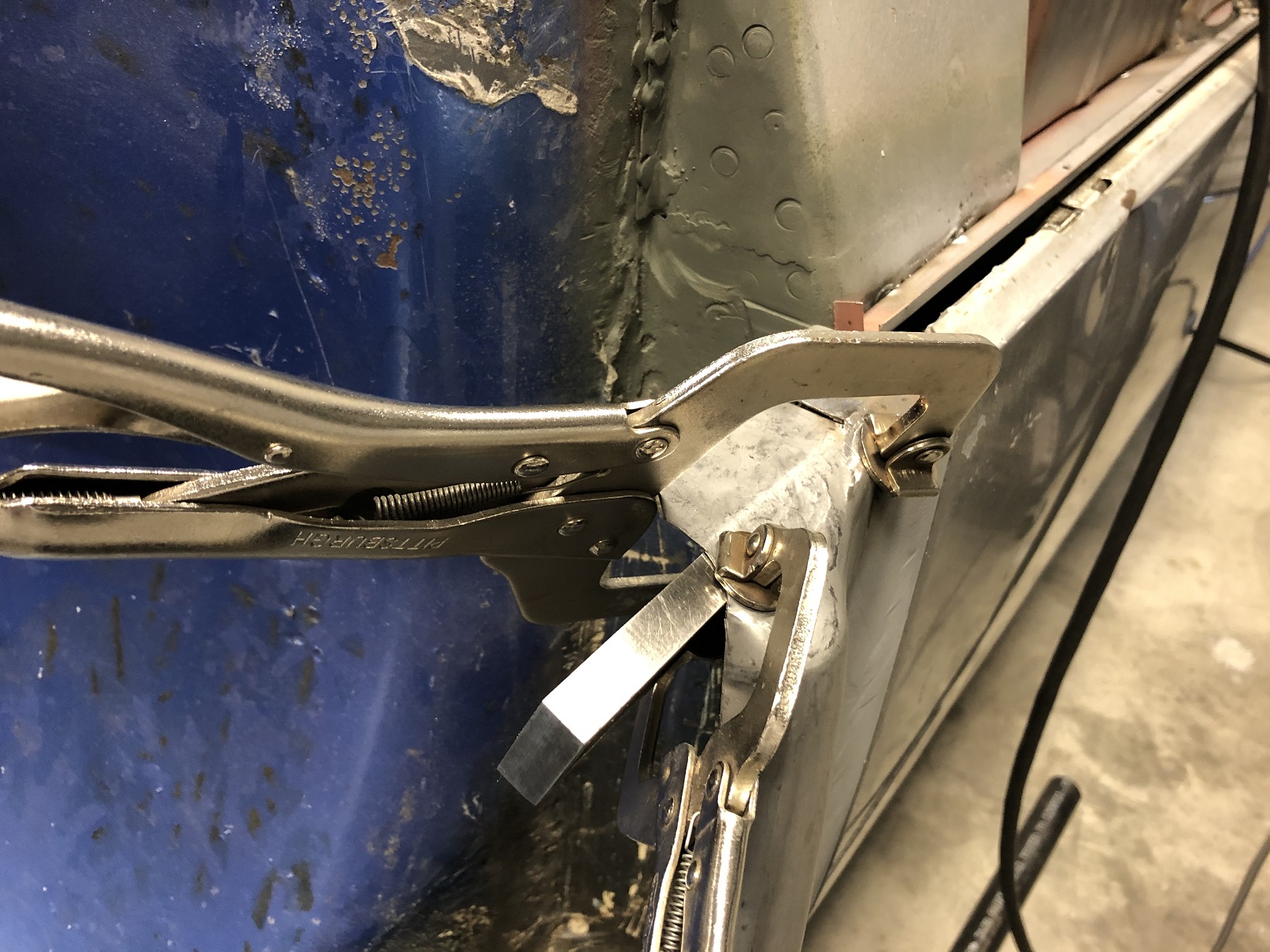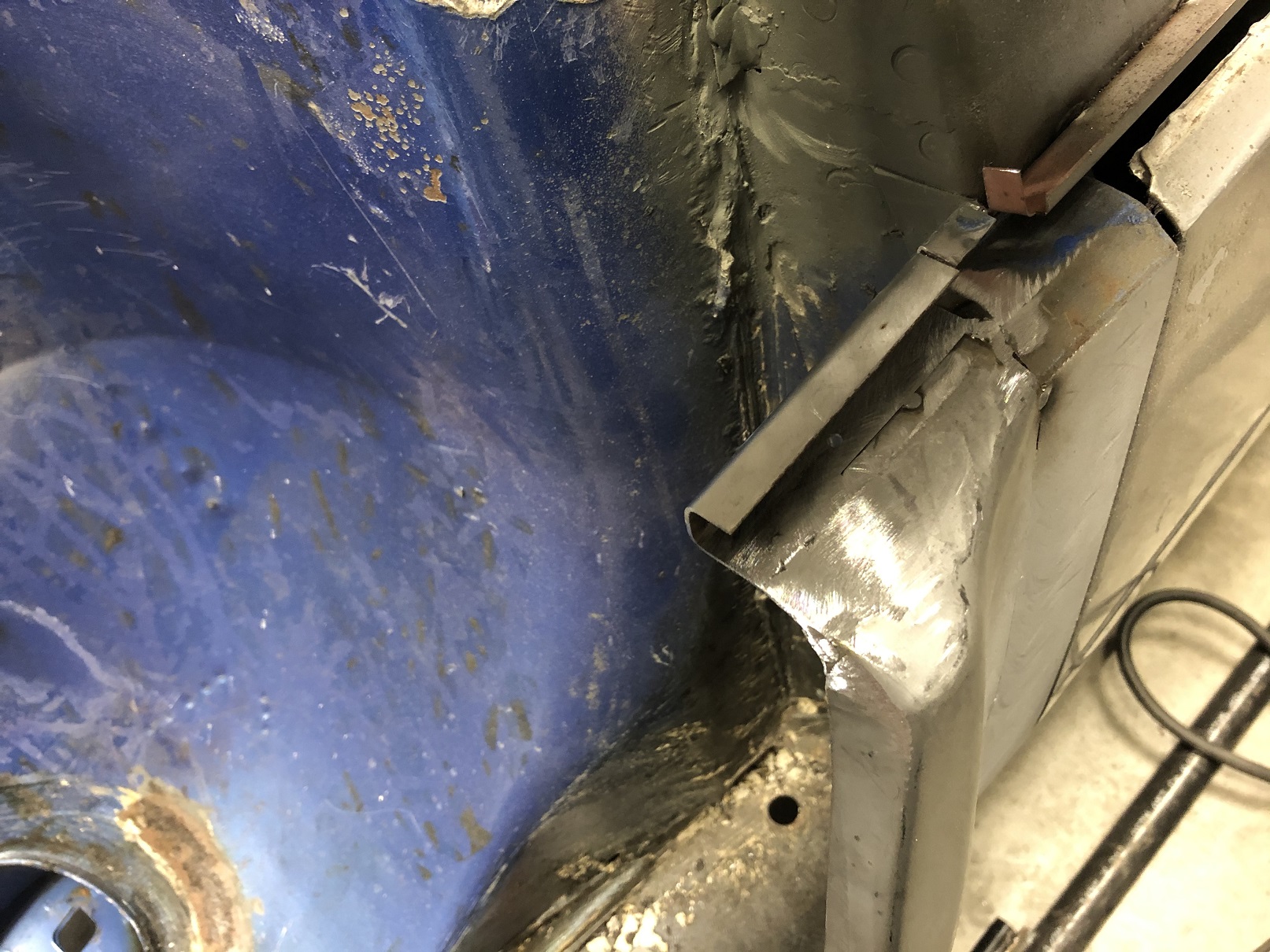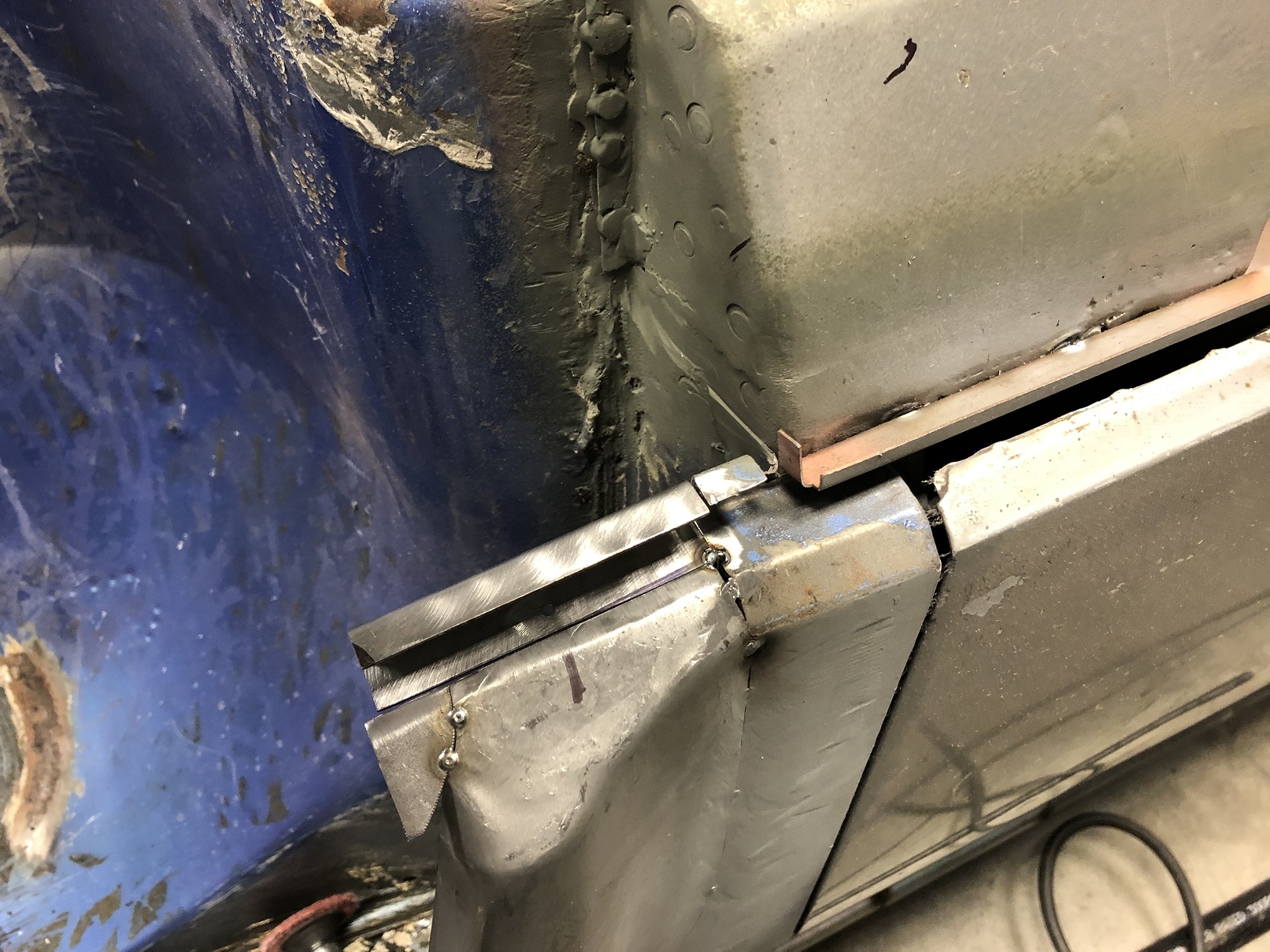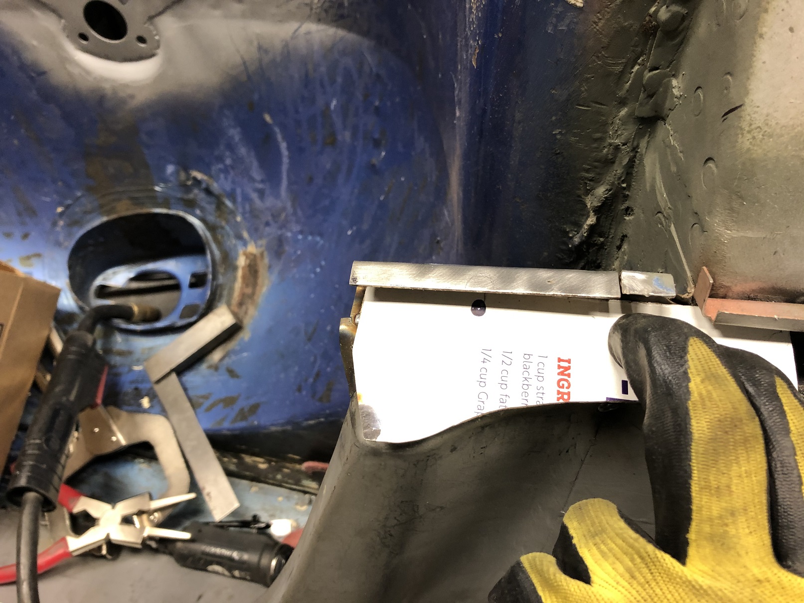 The original factory piece I cut off wasn't going to work so I bent up a channel and tacked in into place.