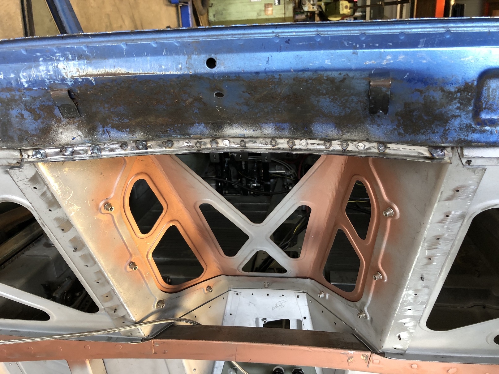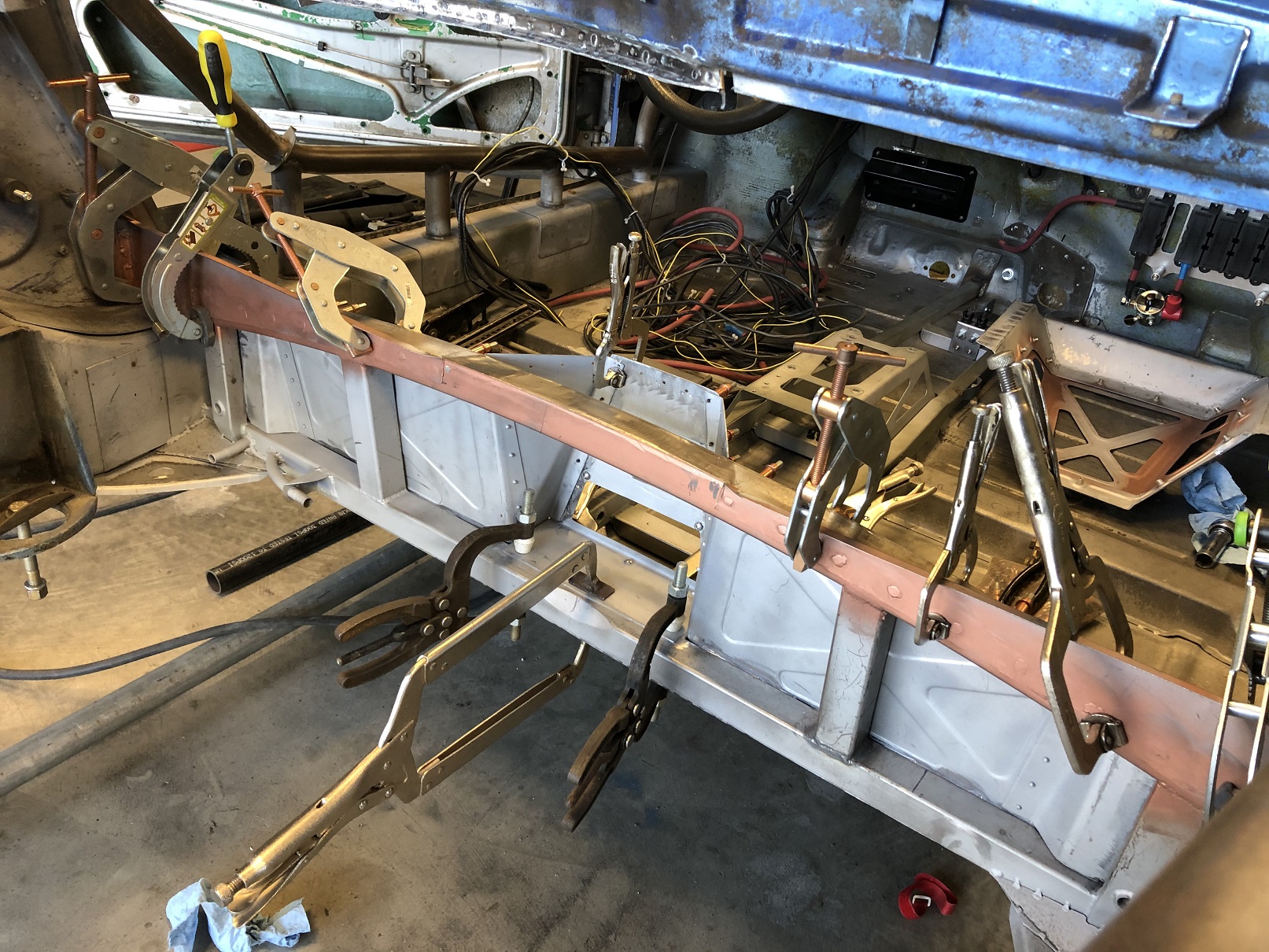 - the console frame is welded in - the floor has been plug welded to the console frame - the lower parts of the fire wall have been bonded in This is my first time trying something like this. I figure there's no kill like overkill so I'm using 3M structural adhesive to attach the fire wall panels. I'm not doing the rivets until after things are painted as I want the rivets to contrast with the paint. Riveting on fresh paint... I'm so looking forward to that! (IMG:style_emoticons/default/blink.gif) I understand this stuff is pretty incredible. A buddy of mine said, "You realize that you'll NEVER get those panels apart. It's stronger than spot welding." Fine by me! So here we go... Attached thumbnail(s) |