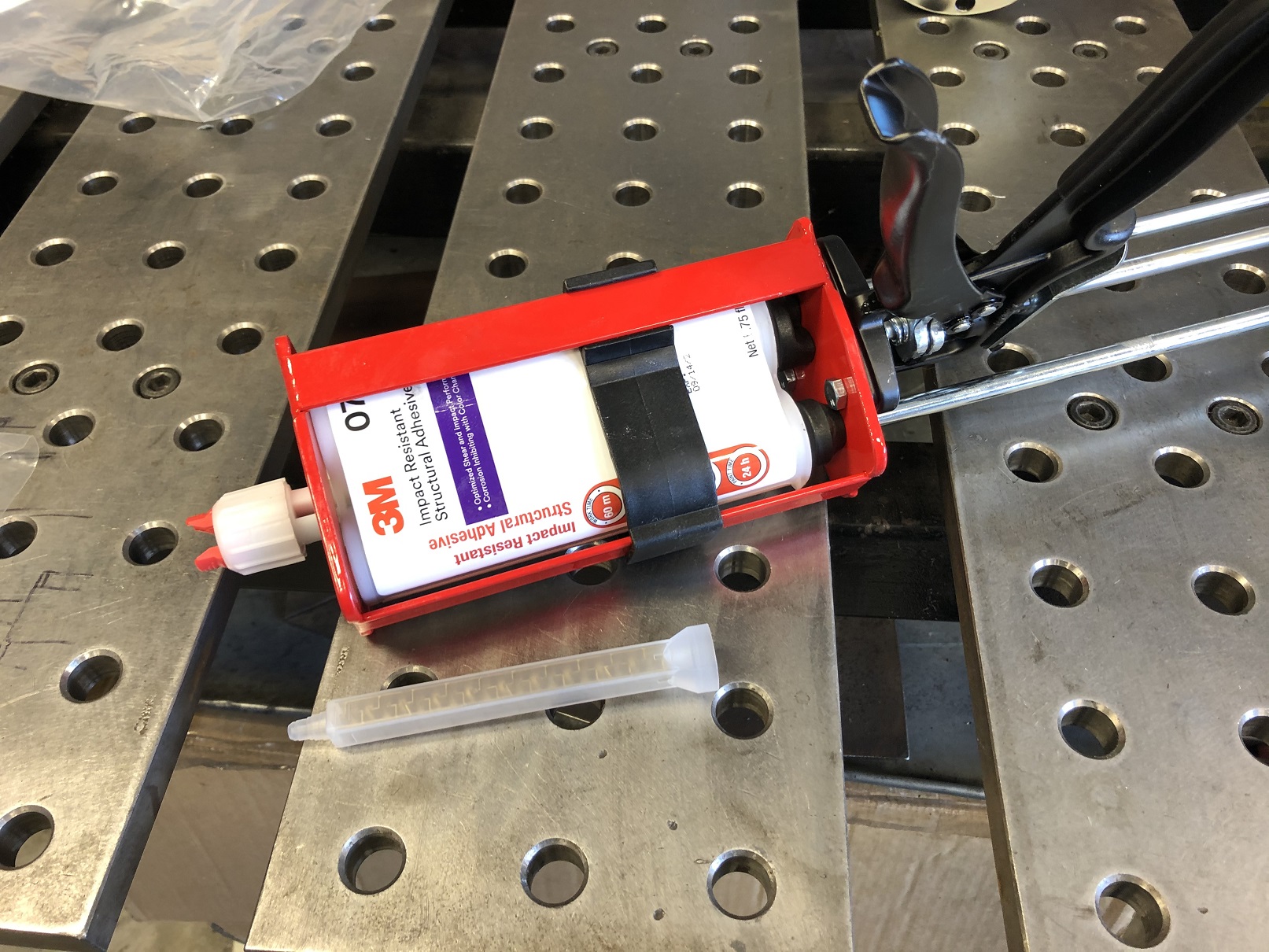 Apply the adhesive to both surfaces and tool it out with an acid brush. Add another small bead to one surface to be sure there is plenty of adhesive and any potential voids are filled while the parts are clamped and curing.