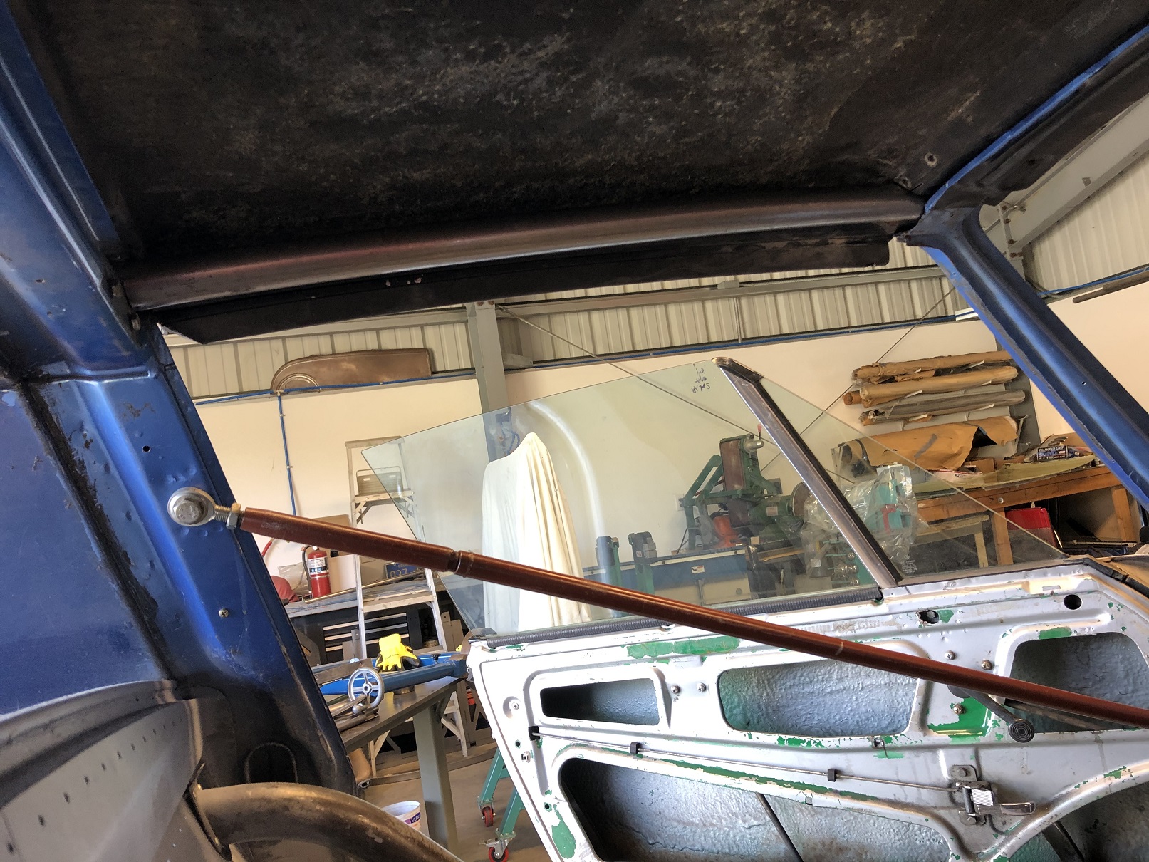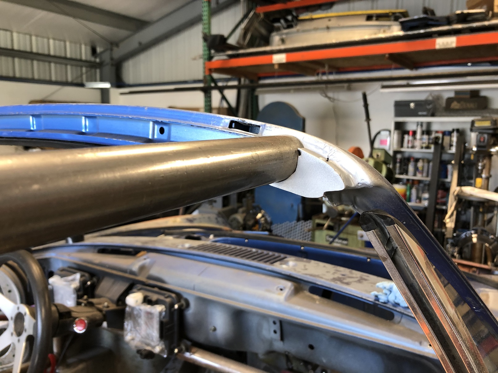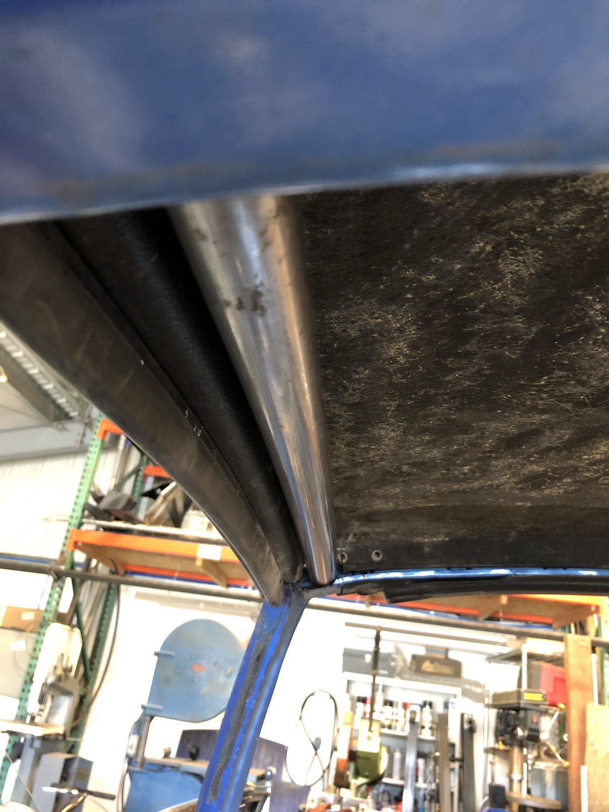 It's a bit hard to see but one other area that will need a bit of fab is across the rear of the targa bar to the roof. With the seal that normally fits there now gone, there's a gap. I'll create a piece that welds to the targa bar and has some sort of flange to which the roof will bond.