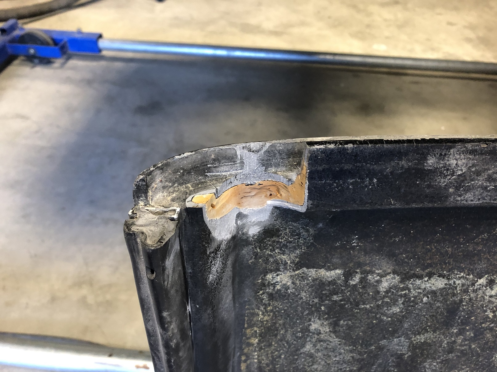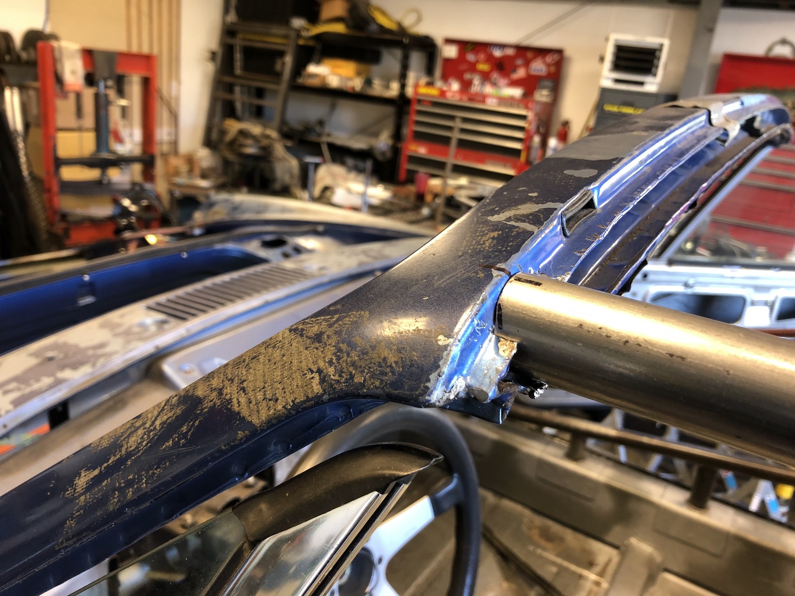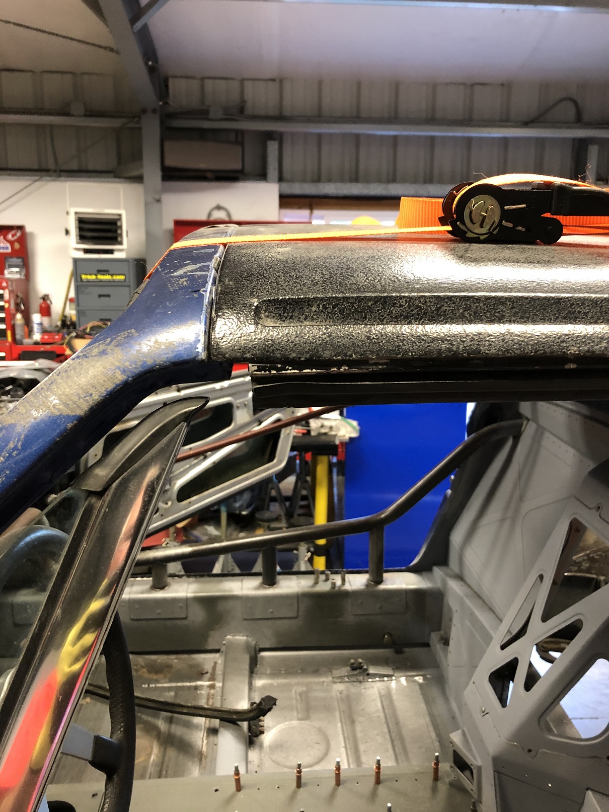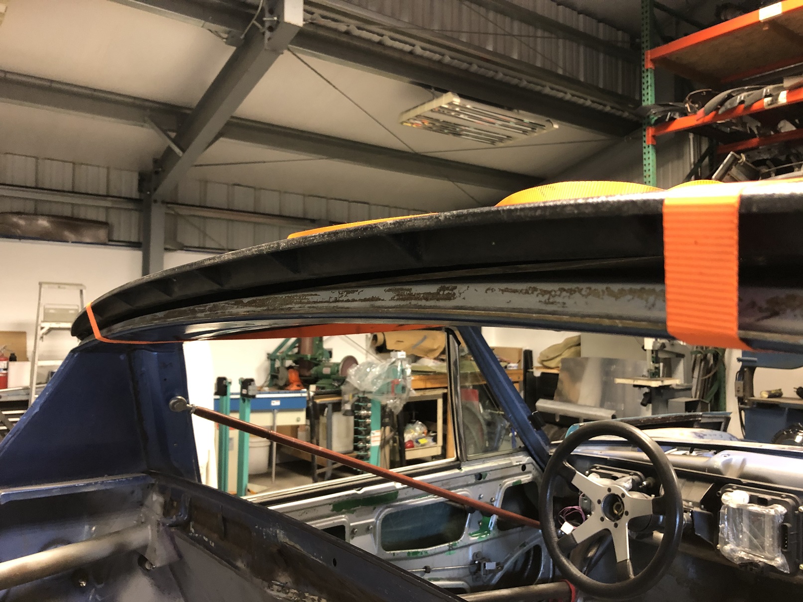 It's a bit hard to see but one other area that will need a bit of fab is across the rear of the targa bar to the roof. With the seal that normally fits there now gone, there's a gap. I'll create a piece that welds to the targa bar and has some sort of flange to which the roof will bond.