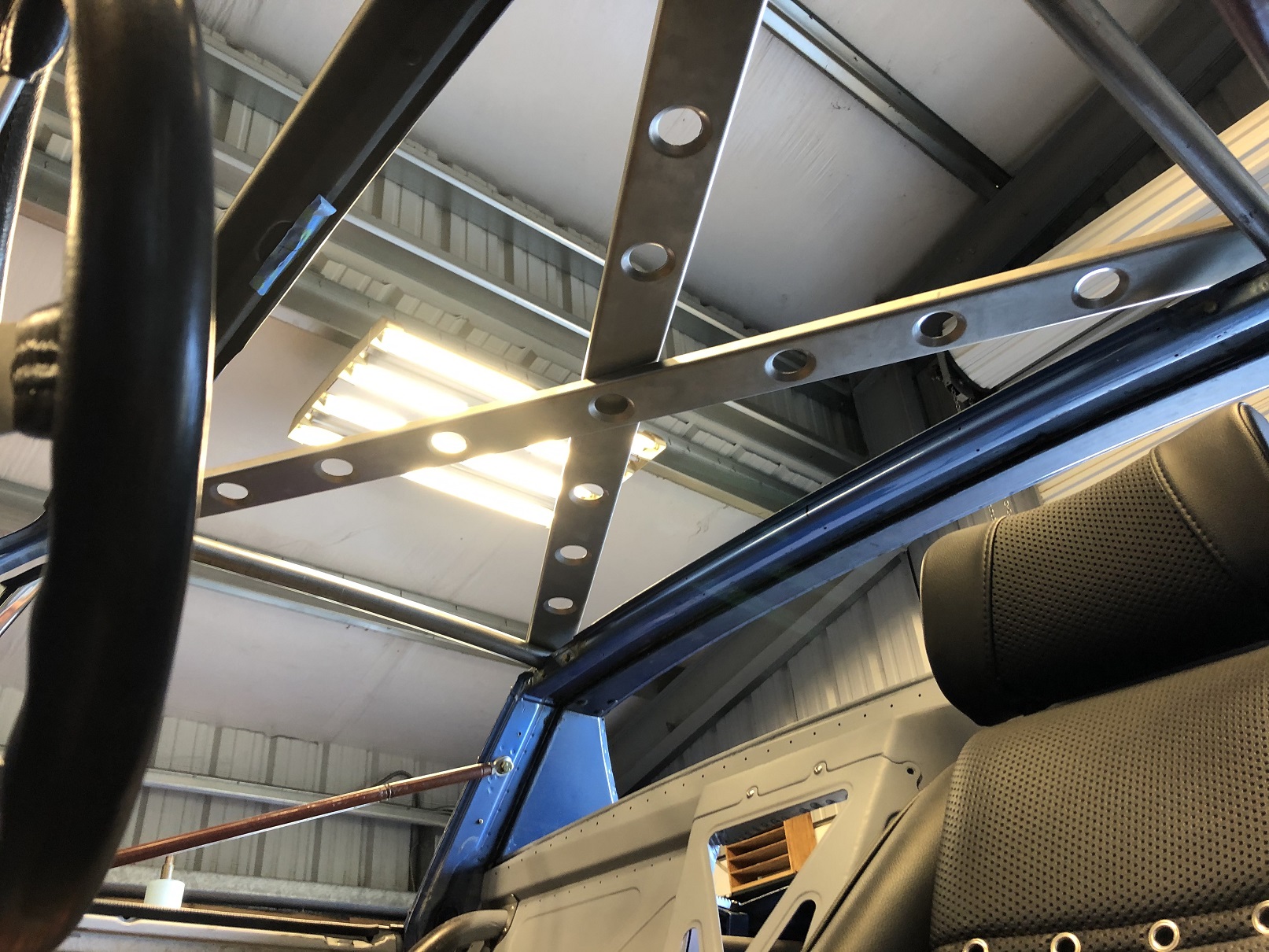 As usual, your fab work looks fab. Thing is, this setup—while undoubtedly strong—has me worried about your safety. Wouldn't take much give in a set of seatbelts for a skull to connect with that steel bar—and I don't think it would take all that much to seriously stiffen the 914 via this concept. Would flat bars or something similar work? Or maybe a bar across the windshield header and a single or double bar in the center of the top? Just thinking out loud while you are at this point (so feel free to ignore!). Best, (IMG:style_emoticons/default/beerchug.gif) |