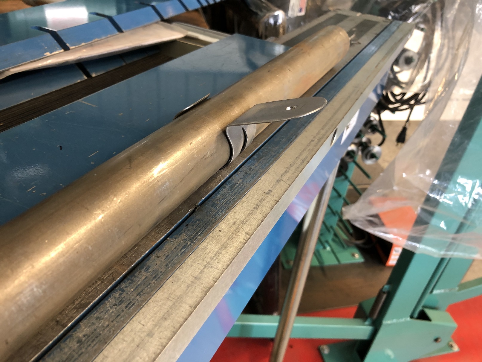 Next, using a piece of scrap tube that's happily the same size as the radiator hose, I used the brake to bend the part to this radius, then added a 90-ish for the mounting area.