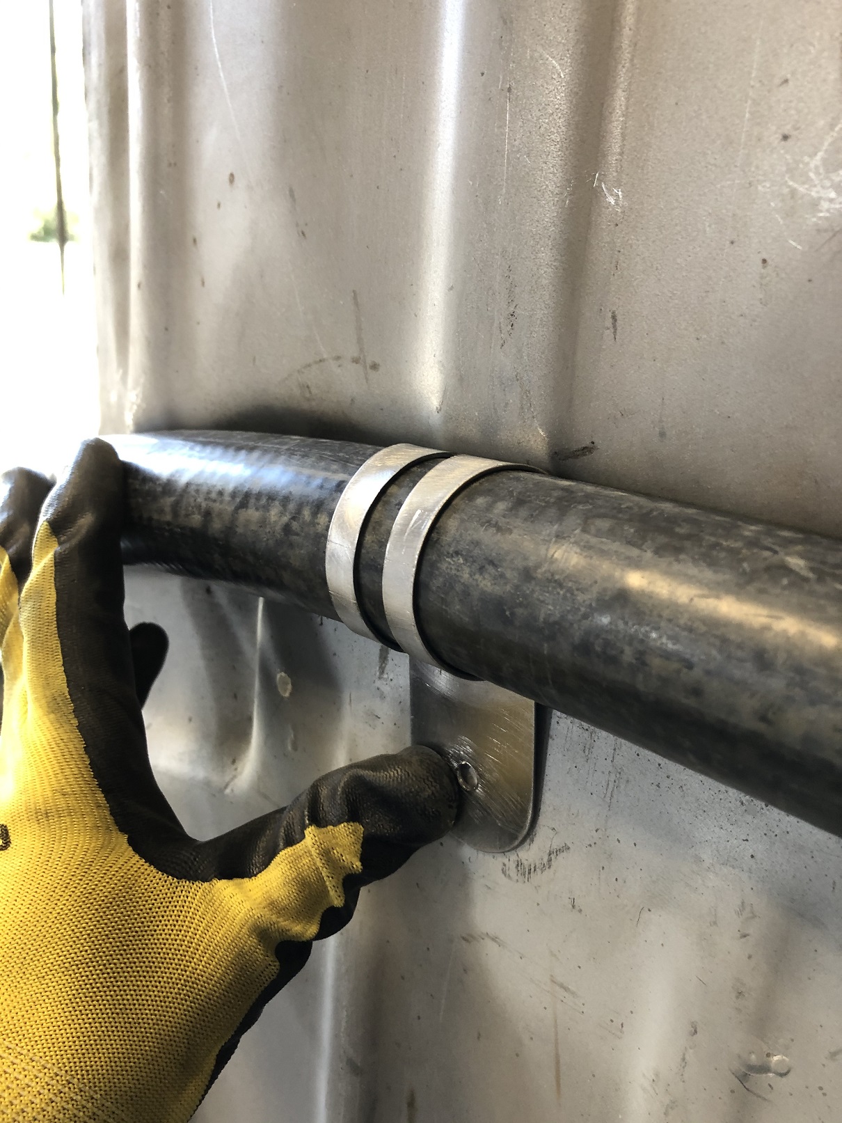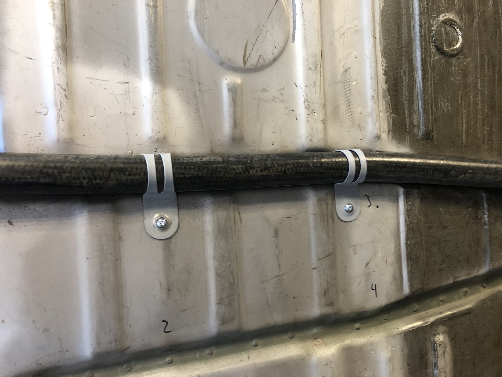 And you can see that the left one's "Rivnut clearance dome" is sorta messy. That was the first one I did and the washer set I used created too deep a depression. So I did the best I could to hammer it back to flat, then gave it a do-over. Not the prettiest, but as Edd says, "with a lick of paint", it should do just fine. To quote @bbrock "if anyone says anything about it, I'll call them a dick..." And best of all, the hose seems well supported so I'm feeling good about this approach. Onward to the rest of them! Attached thumbnail(s) |