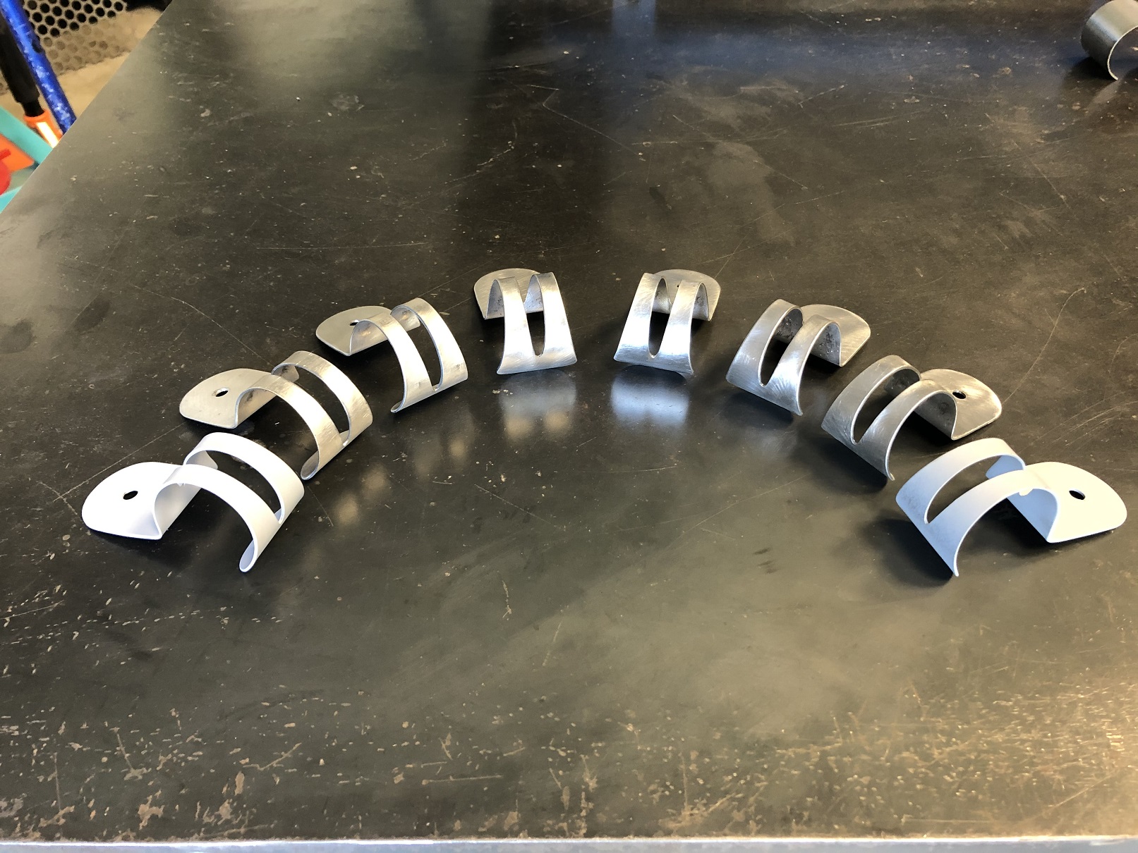 The other thing I like about this "single bolt attachment point" design, as well as the plumber design, is that if I run over anything that grabs the clamp, it's highly likely it would bend open. A fastener on both sides would mean the clamp would have to break/rip or else other areas of the floor would suffer damage. I'll noodle on this a while and if I convince myself the design "works", it's off to make the rest of them. Worst case, if the 90 seems too weak, I can weld in a small triangle support at that location. We'll see. Attached thumbnail(s) |