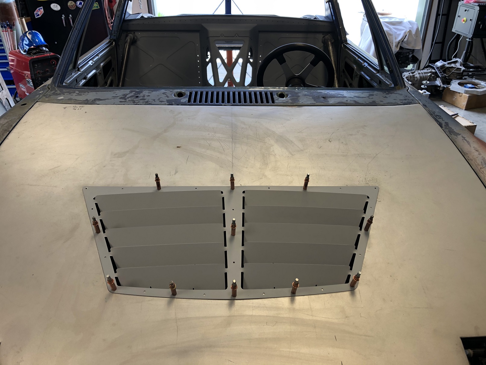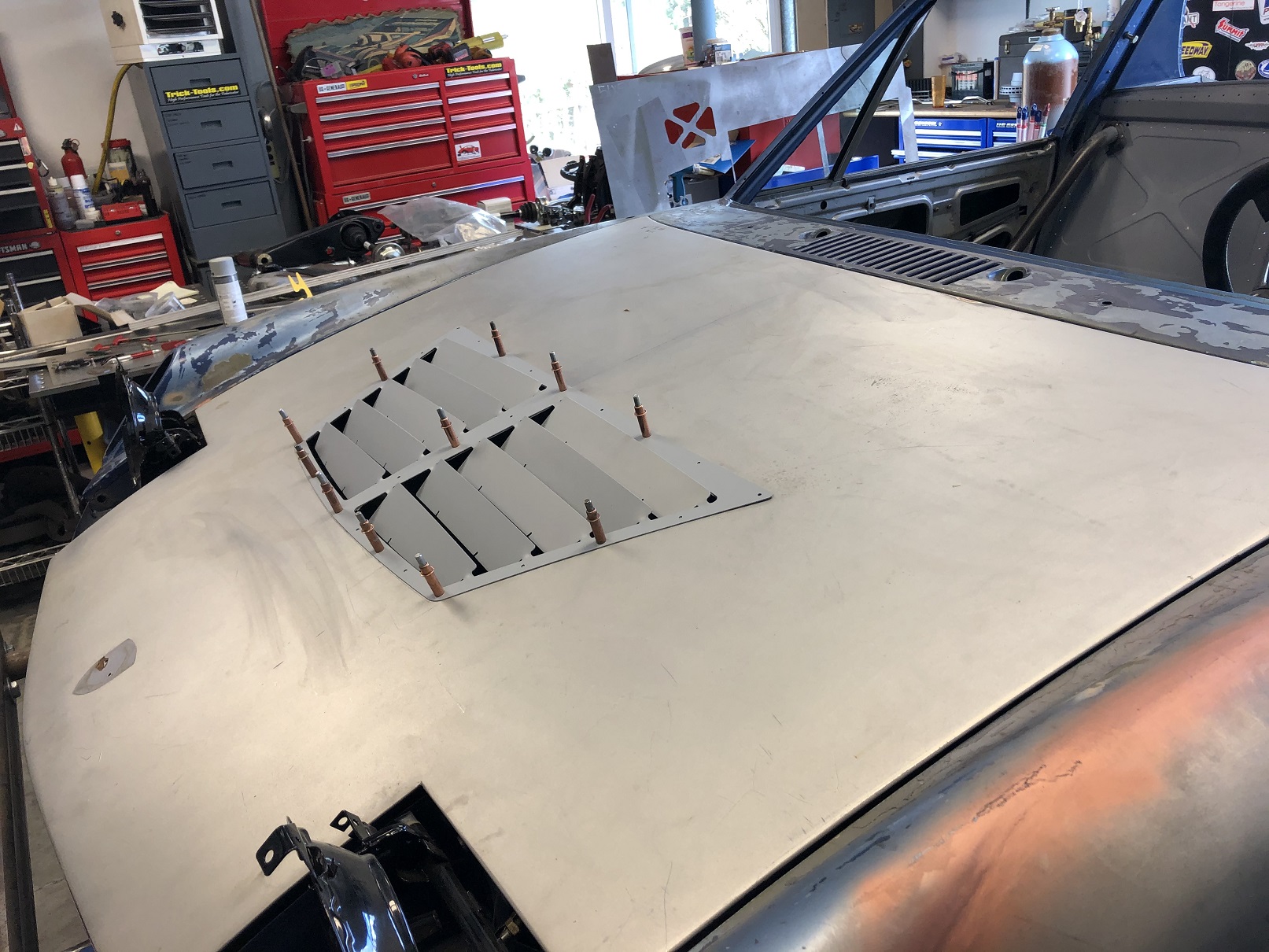 Test V1. The good news is this hood was worse than I thought! LOTS of filler and other damage so I don't feel bad about cutting it up.