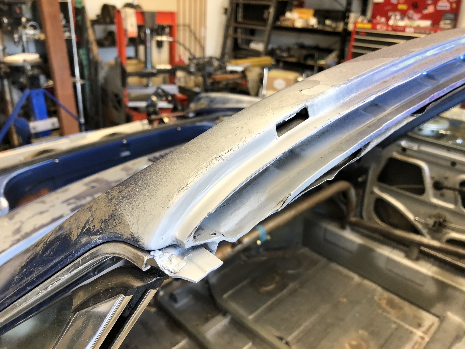 Now for the "repairs" to get it back to accept the standard seal. I need to patch in where I notched it for the side rails.