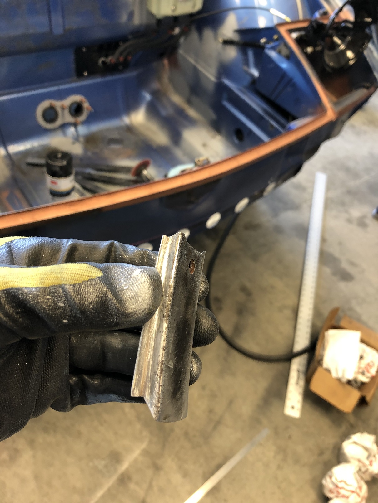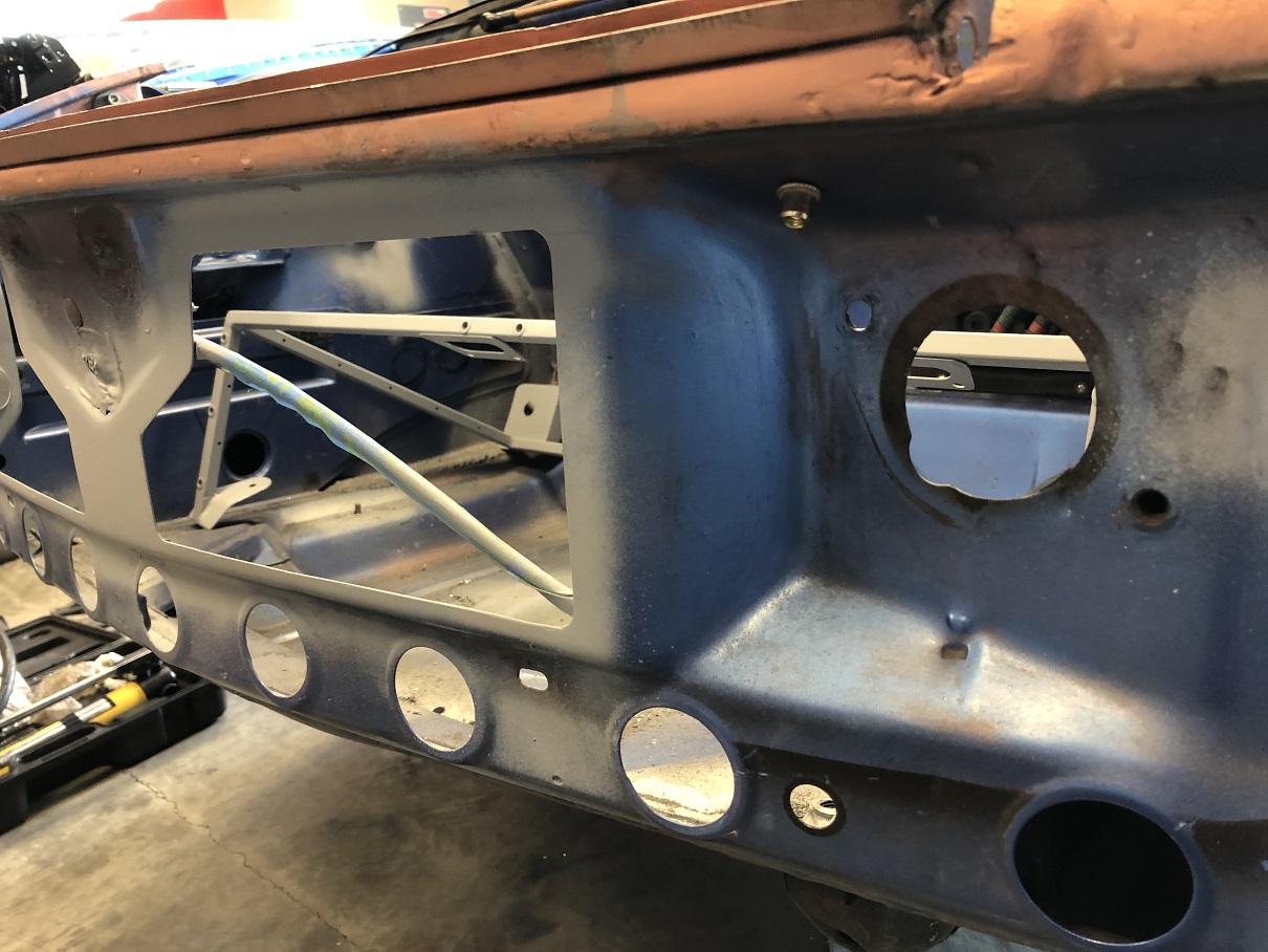 With the car off the rotisserie, I can now get at the front panel to cut it for the radiator inlet. But since I plan to keep the hood latch, I want to retain a section of the panel from below the latch, connected to the lower area. And I wanted to reinforce that area before cutting the openings. A bent channel section of sheet metal would be best but that area has a lovely slight curve and making the needed piece would be fiddly. What to do? I've noticed that there are a lot if similarly curved pieces on these cars. I wonder if I can repurpose a part from somewhere else. (IMG:style_emoticons/default/idea.gif) I had a trashed engine lid and noticed this wonderful, curved sheet metal channel! Would it? Could it? Slice, slice, shape, shape. Attached thumbnail(s) |