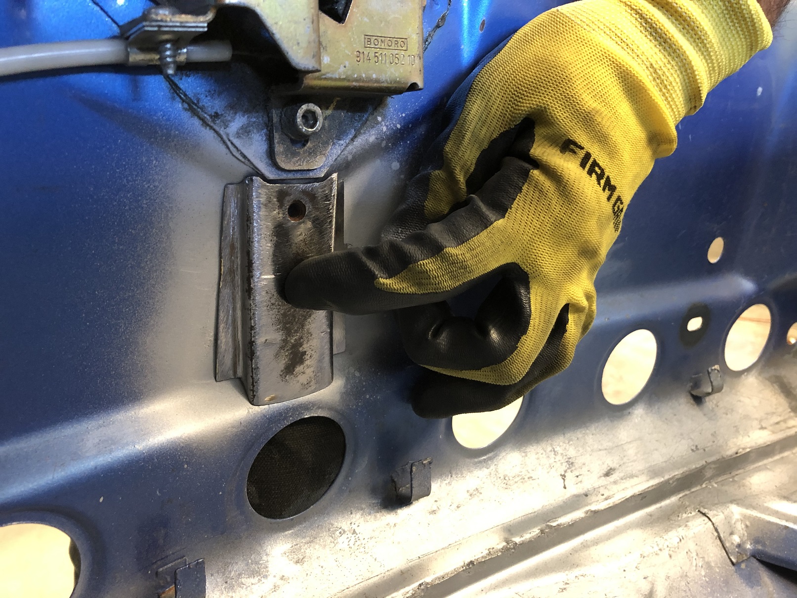So if anyone asks: Yes, you can use a trashed engine lid to make a hood latch support for your water-cooled conversion! And it's all Porsche metal so you gotta love that. I need to order longer arms for my spot welder in order to reach in far enough so it'll be a few days before this get's welded in. Attached thumbnail(s) |