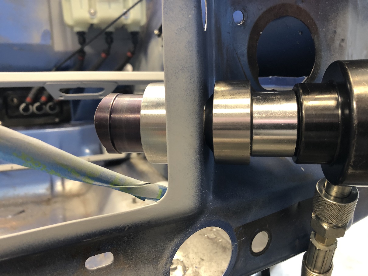 And for anyone running/considering running the Boxster S 6-speed, here's the axle angle you get when you move the drive train forward 1.5 inches, like I did. I'm still running the Renegade 1/2" spacers between the output flanges and the inner CV. In all, I think I reduced the axle angle by about 1/2 of what it would otherwise have been. Is the angle due to the LS and adapter or the transmission or both? @djway - the Renegade kit assumes a stock chassis and in order to fit the LS with the Boxster 6-speed, the axle output shafts end up where they end up. Tony @Cracker suggested addressing the high-ish axle angle, if possible to help reduce CV stress. I figured I'd just move the lower firewall a bit and scoot everything as far forward as I could. Those aluminum blocks between the black components of the trans mount are the distance things went to the front. |