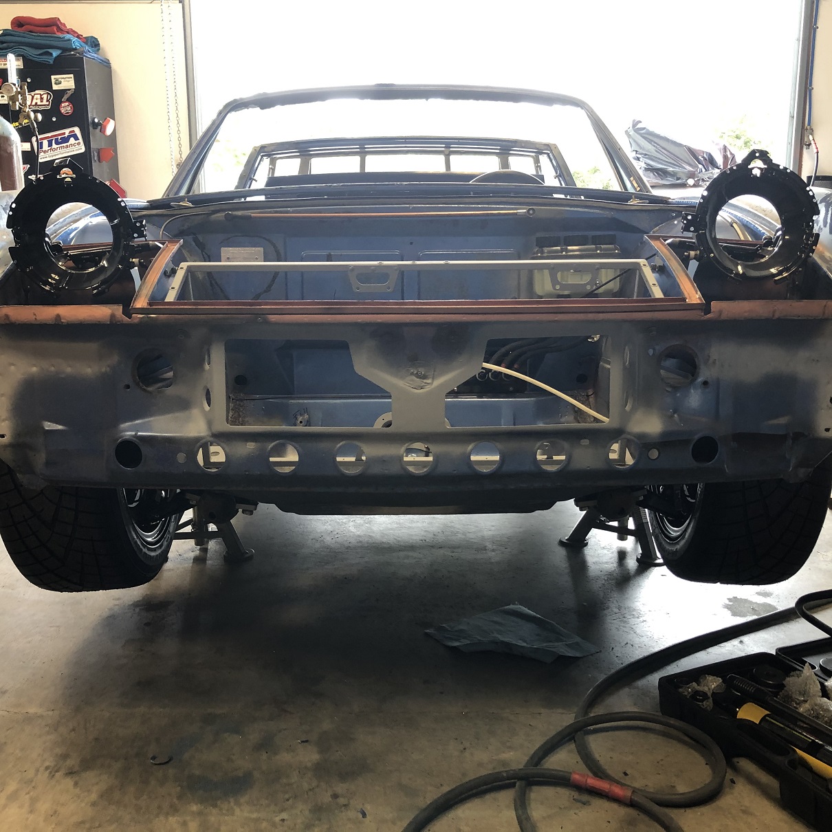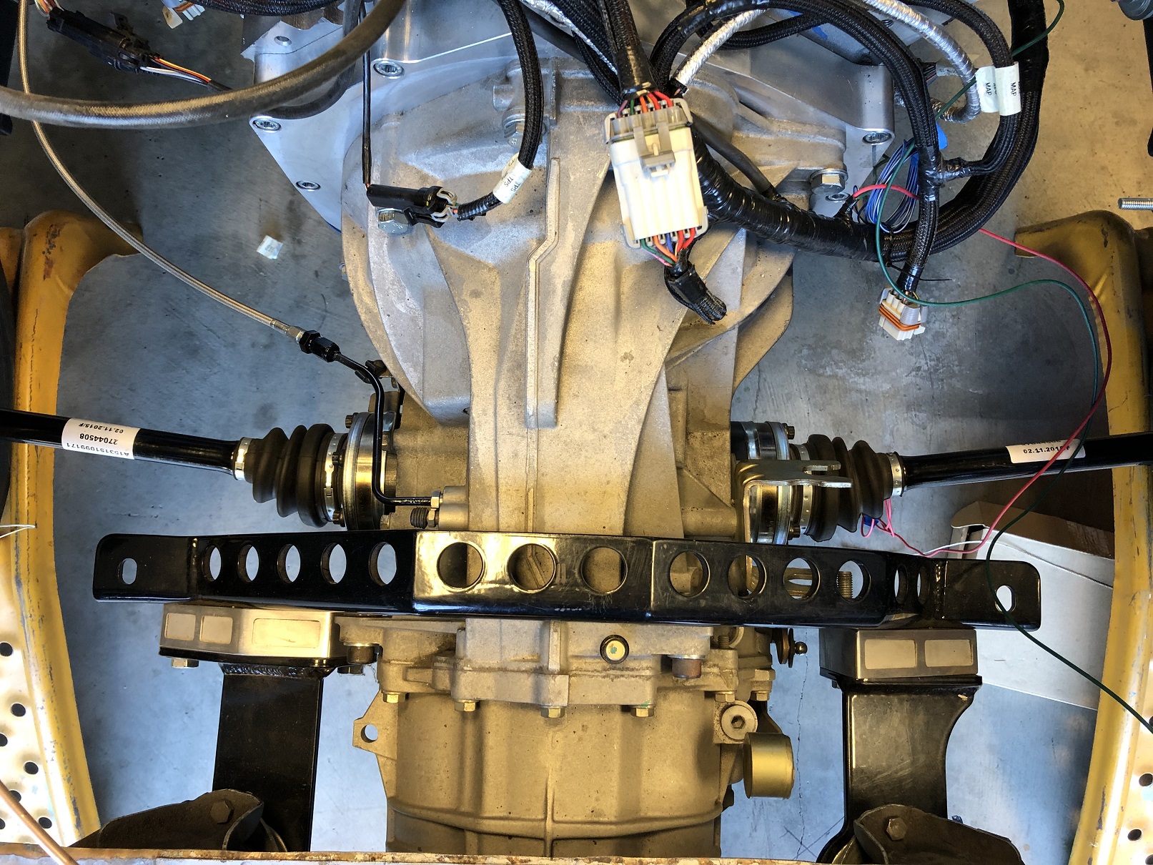Yesterday was all about the front. Today, the back. The drive train is back in and should stay in until this thing sees the road! It's been months since I saw this view.