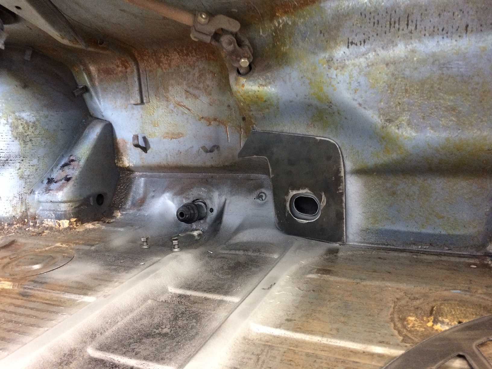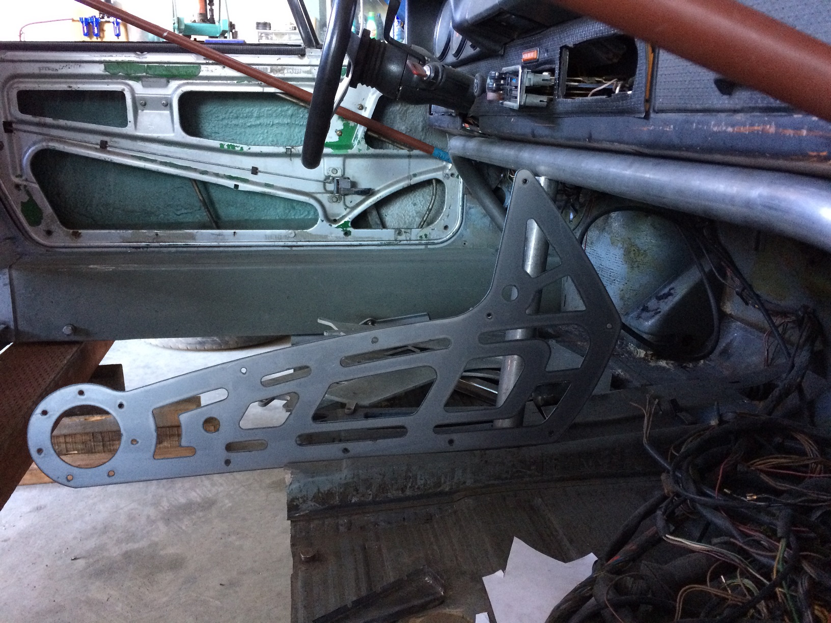 Old tunnel out. Here's a rough fab of a plate to help distribute the loads from the tunnel tubes. Boring, I know. Attached thumbnail(s) |