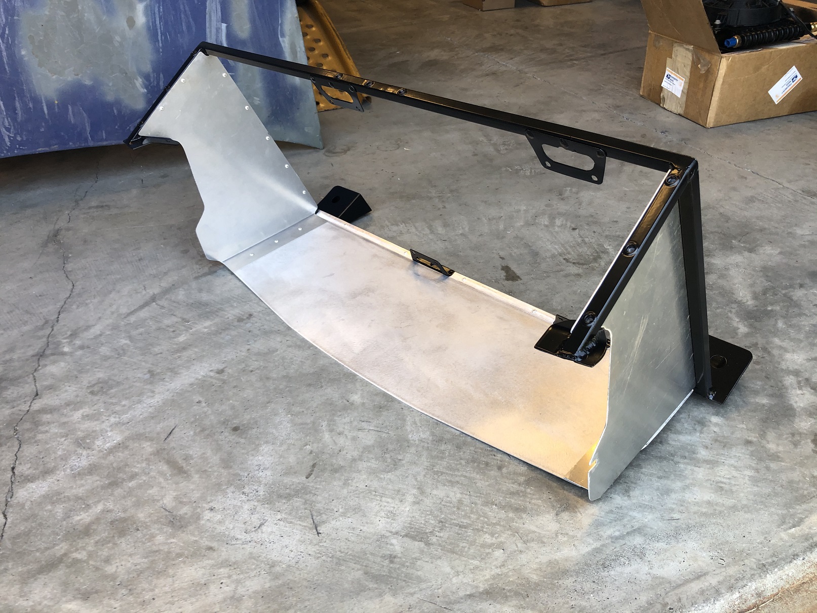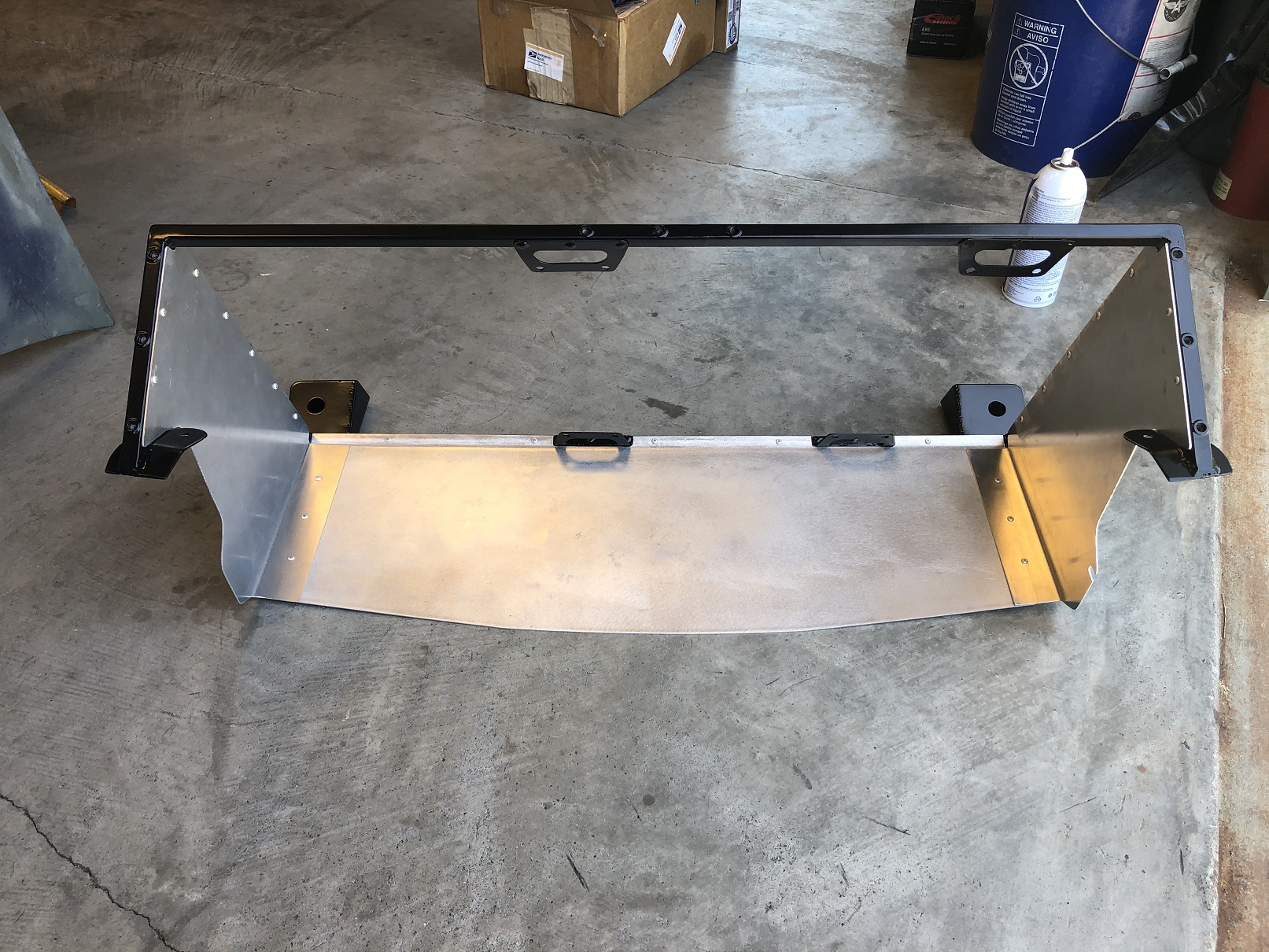 While I will be temporarily installing some of the rivets ahead of paint, it'll only be those I can easily get behind to remove. I can't install any that attach panels to the tubing as if I removed them, the back side rivet parts would rattle around inside the tubes forever. But some items must (and can) be "finished" as separate assemblies, so long as they get their finish done before the rivets go on. Here's the powder coated and all finished rad mount with associated shrouding. I think it turned out really nicely. Sharp eyes will notice these aren't pop rivets. They are the CherryMax structural rivets mentioned dozens of pages back. They retain their steel core and are WAAAAY stronger than the typical pop rivets. Overkill, as usual, but I have them for the fire wall and figured I'd use them here, too. The tabs on the mount are for the AC condenser. Attached thumbnail(s) |