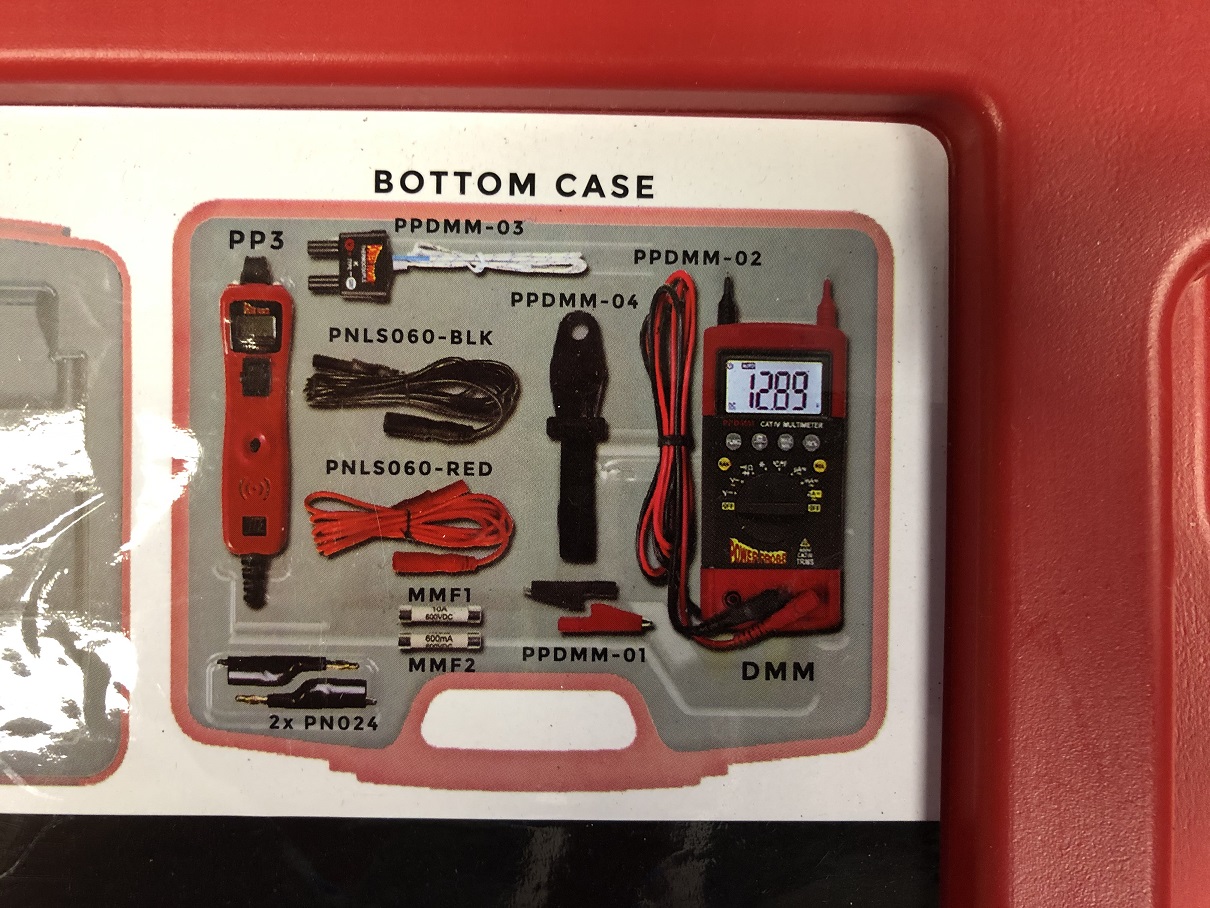 The probe is that "PP3" item on the left in the pic above. The kit also has a bunch of different ends that plug into the leads: alligator, pointy, thin bladed, etc. that you can see in the pic on the front of the case. I just didn't include a pic of them...