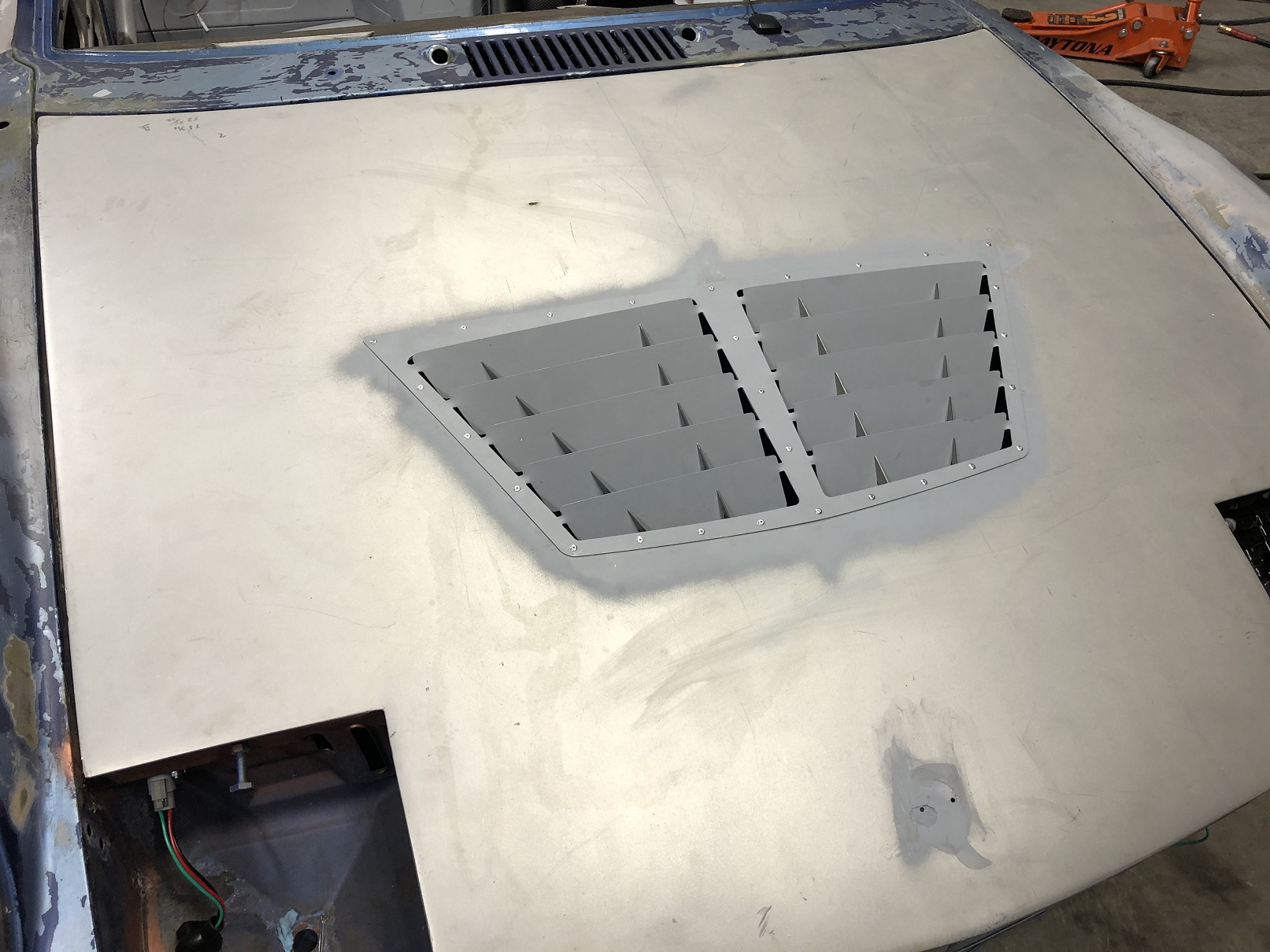 I figured I'd go ahead and see what the hood vent looks like riveted in from the top. Remember, this is the test hood and not necessarily the final version of the vent. Also, just standard pop rivets. But it gives me a good idea of this look. I like it from some angles, from others, not as much. Still some work to do. Attached thumbnail(s) |
